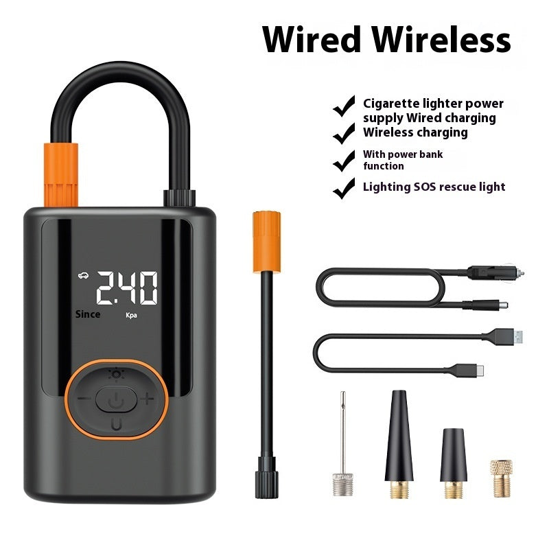 Additional functions: lighting, tire pressure gauge, warning light, USB charging