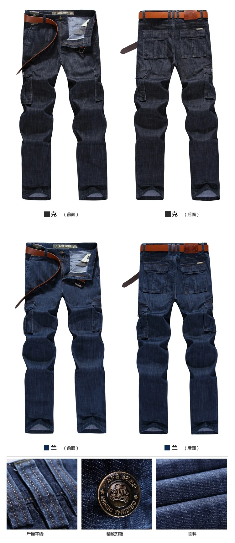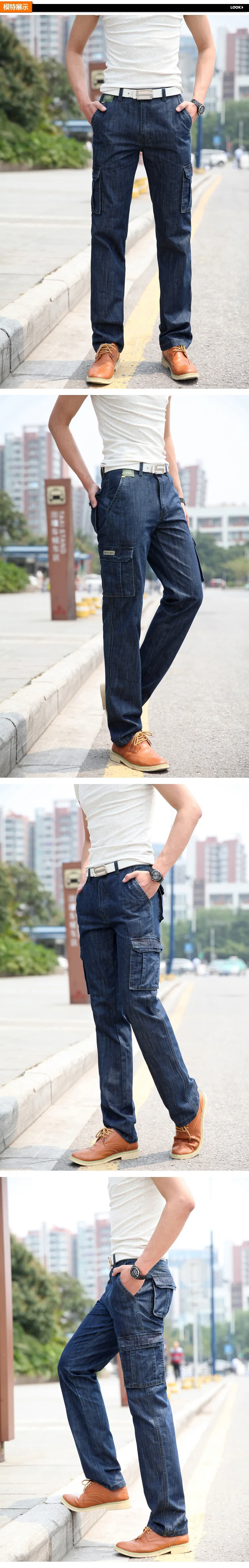 Men Jeans Regular Stretchy Motorcycle Denim Pants Straight Leg Cargo Pant Casual Multi-pocket Jeans Male Clothes
