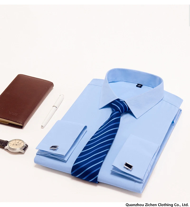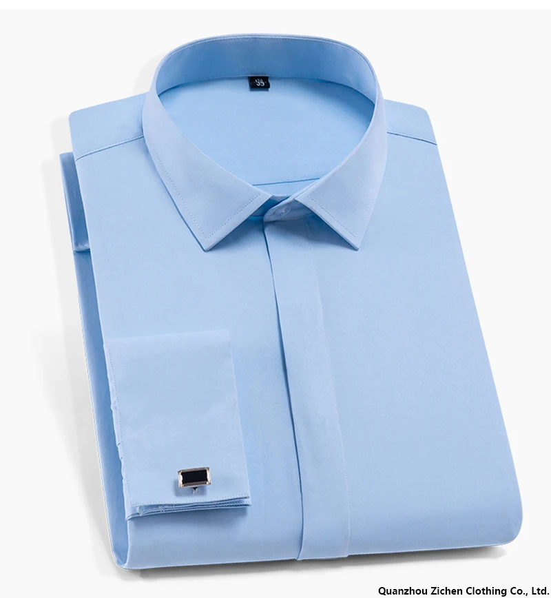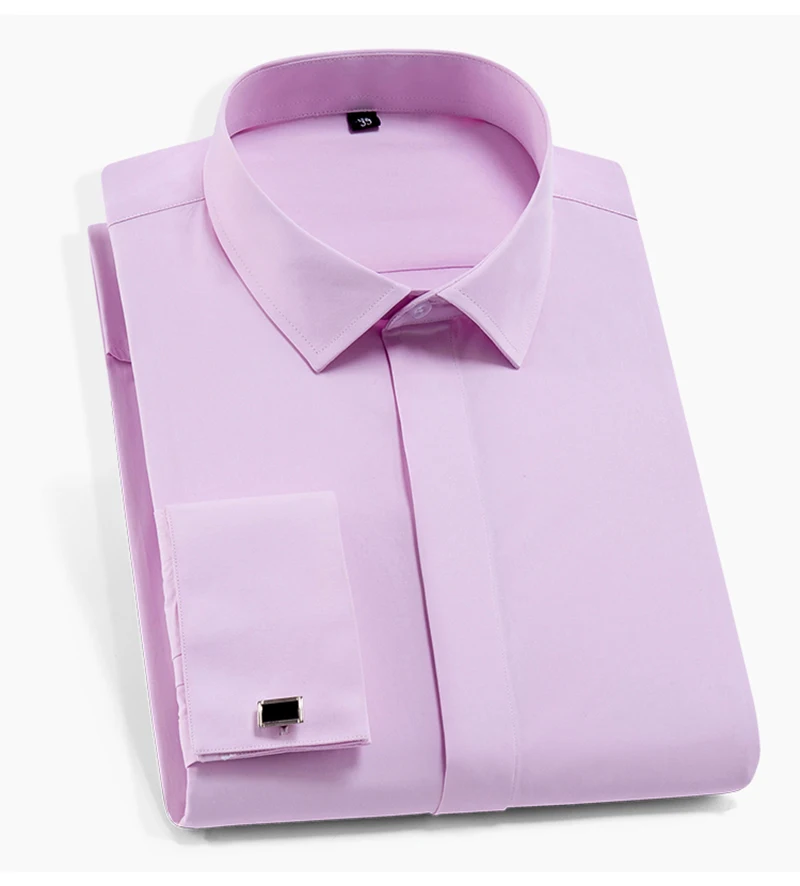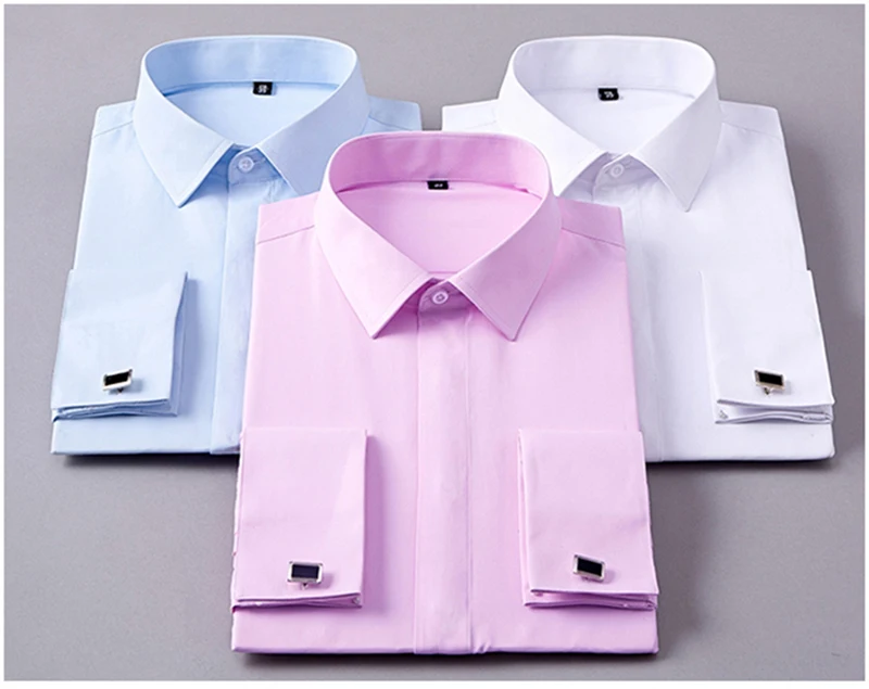 Men's Classic French Cuff Dress Shirts Long Sleeve No Pocket Tuxedo Male Shirt With Cufflinks Formal Party Wedding White Blue