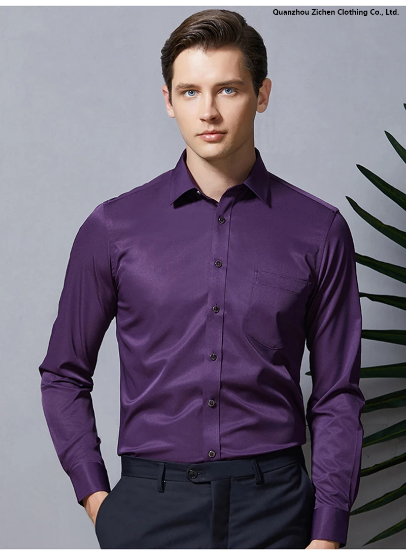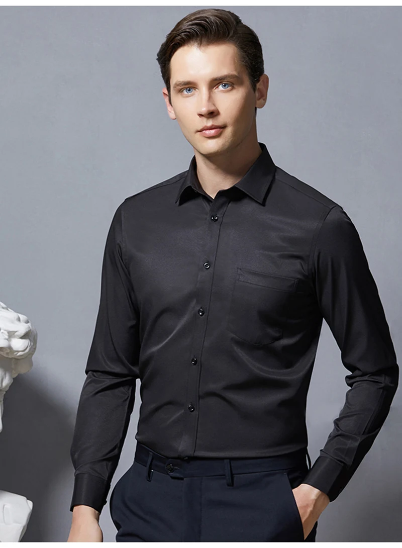 Men's Classic Non Iron Stretch Solid Easy Care Shirt With Pocket Long Sleeve Formal Business Standard-fit Basic Dress Shirts