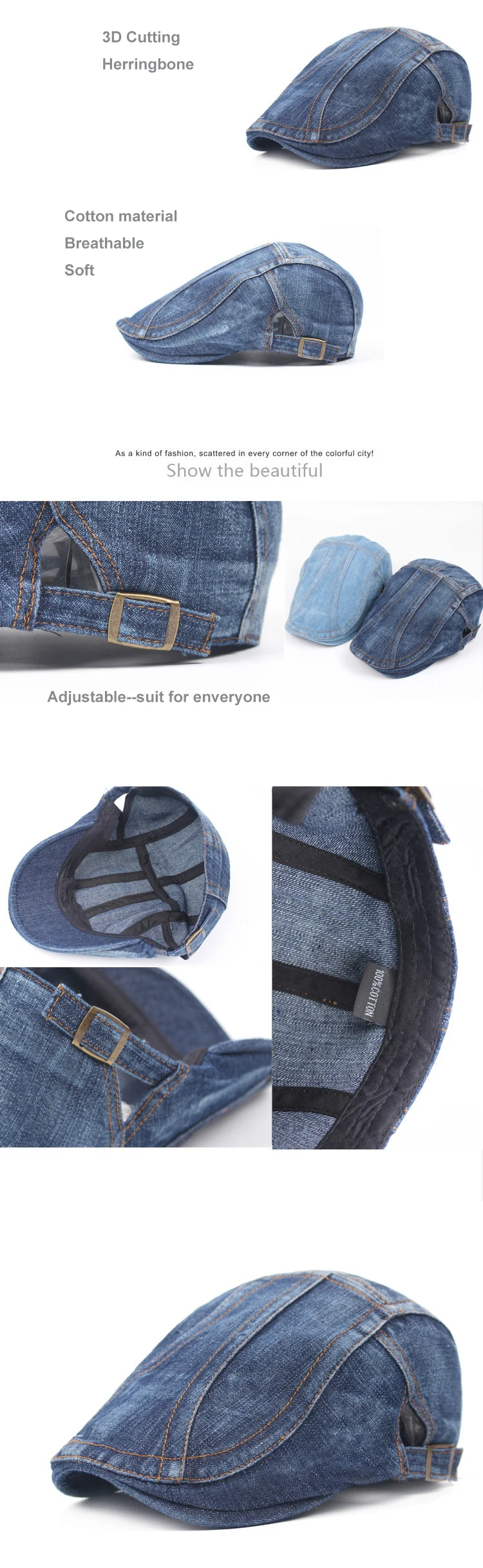 Mens Denim Newsboy Beret Hat Flat Driving Cap Unisex Cotton Dad Cap Hat Jeans Cowboy Cabbie Beret For Men