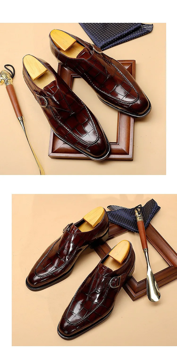 Men's Leather Office Casual Formal Dress Shoes for Men Luxury Fashion Retro Shoes Monk Wedding Party Shoes