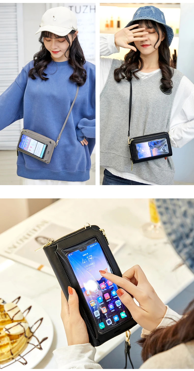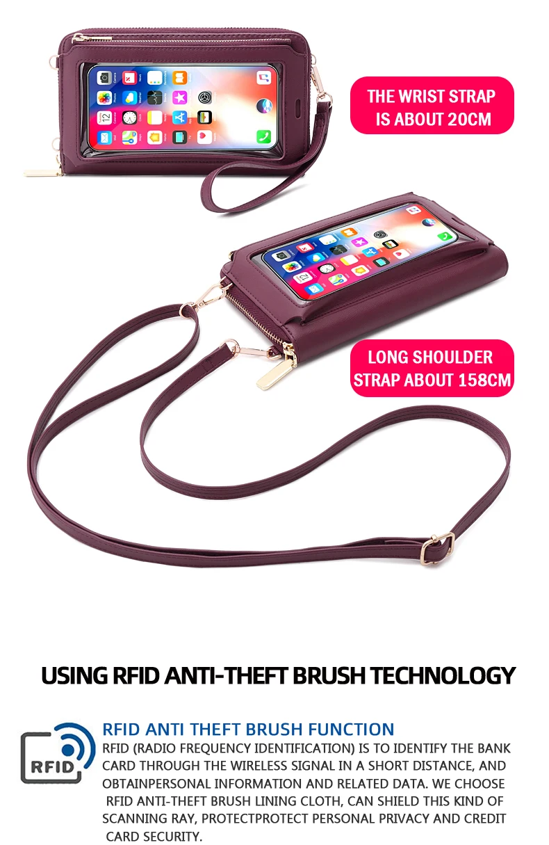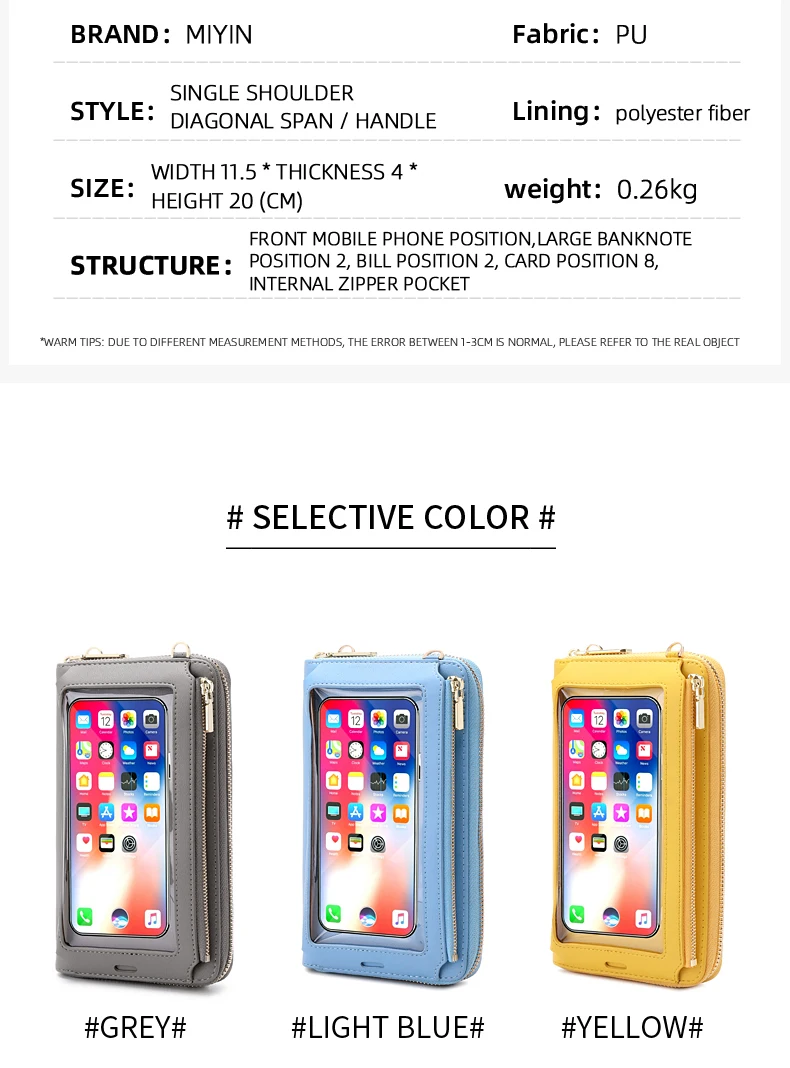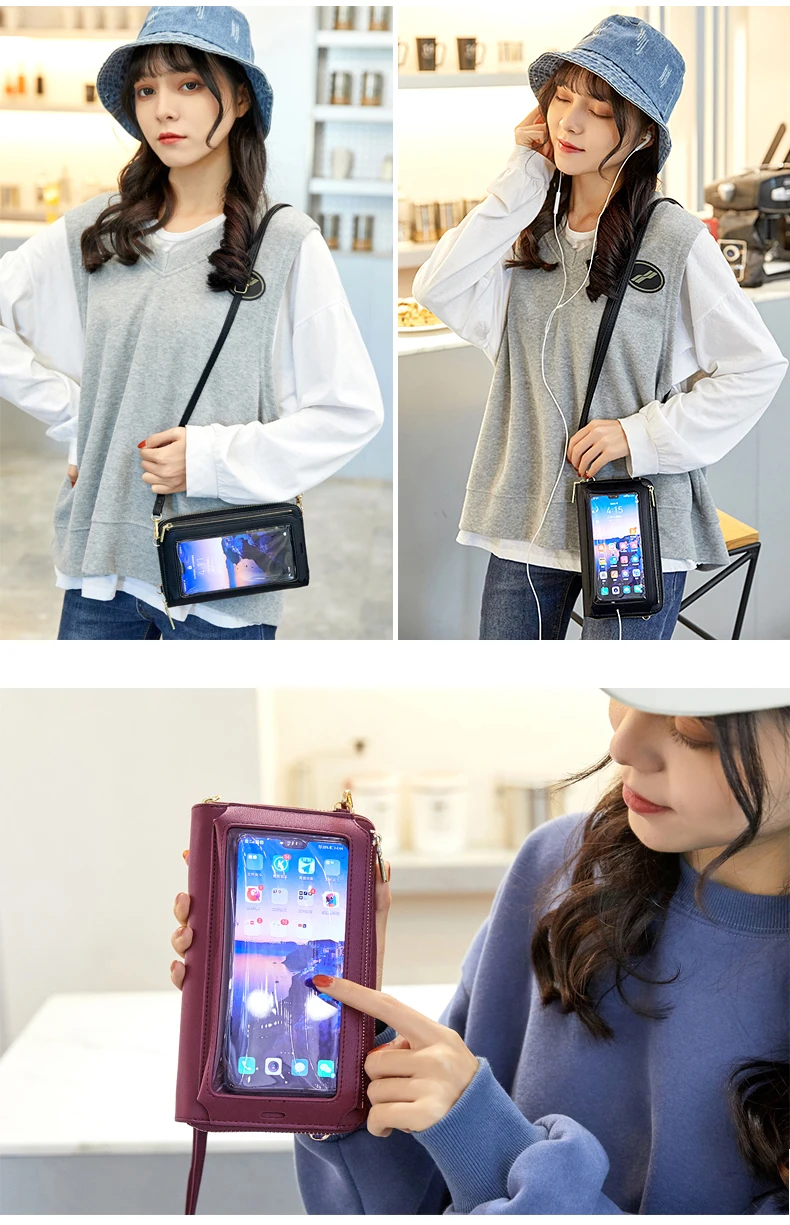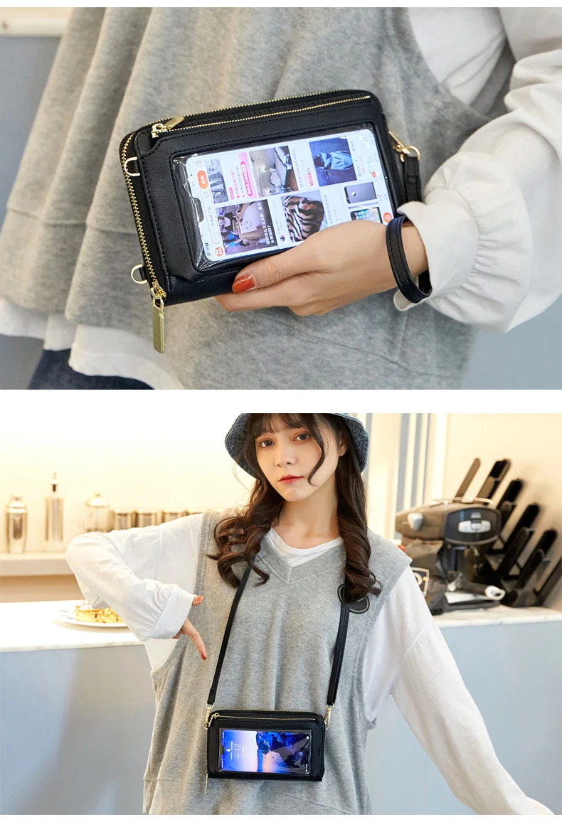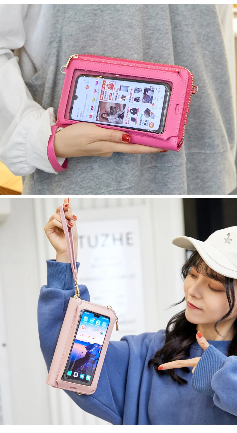MiYin ladies wallet Transparent touch screen bags mobile phone purses and handbags women mini Cross body bag RFID wallet women