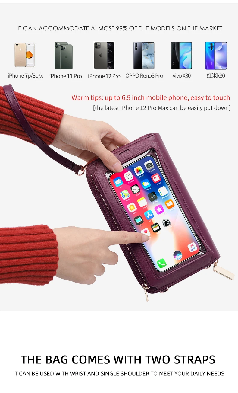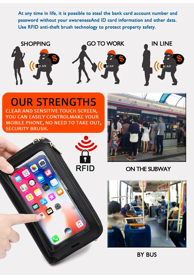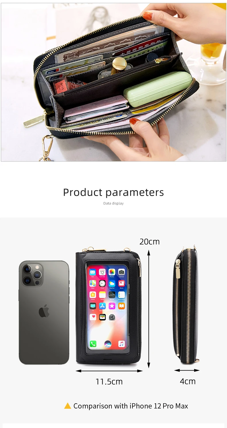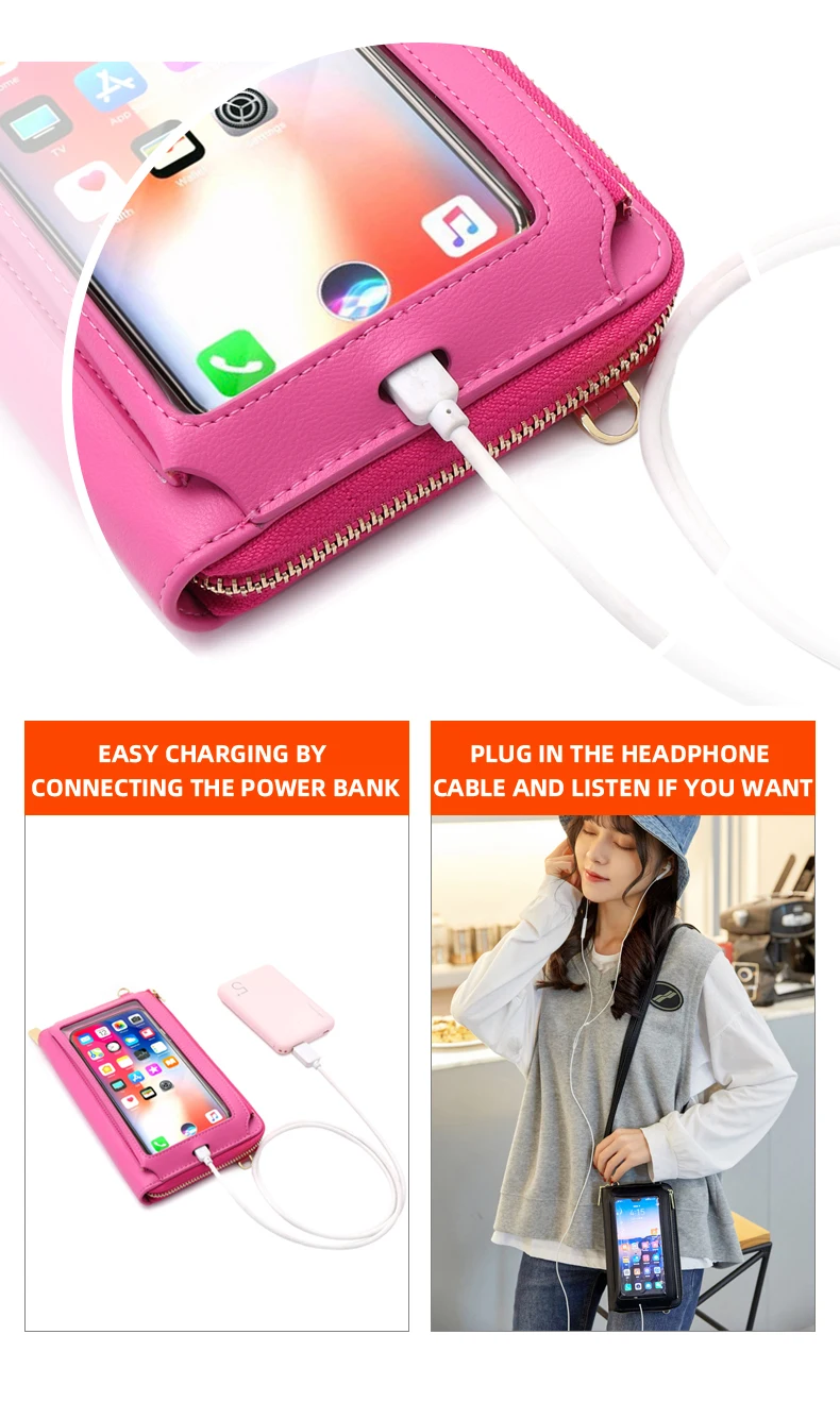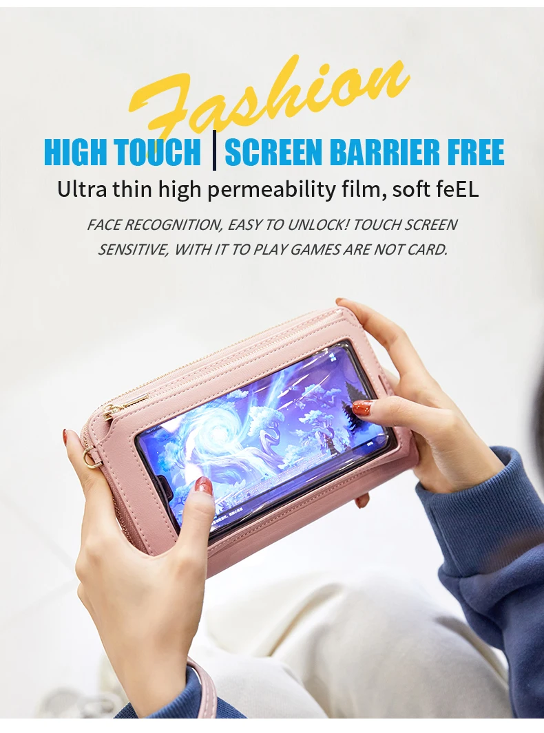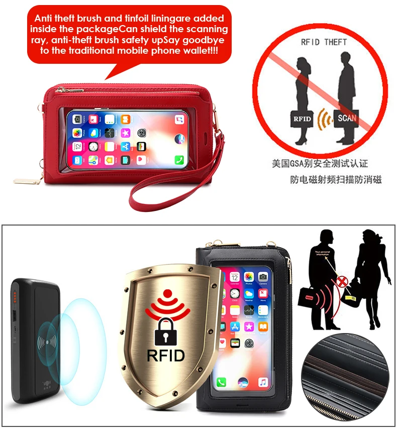 MiYin ladies wallet Transparent touch screen bags mobile phone purses and handbags women mini Cross body bag RFID wallet women