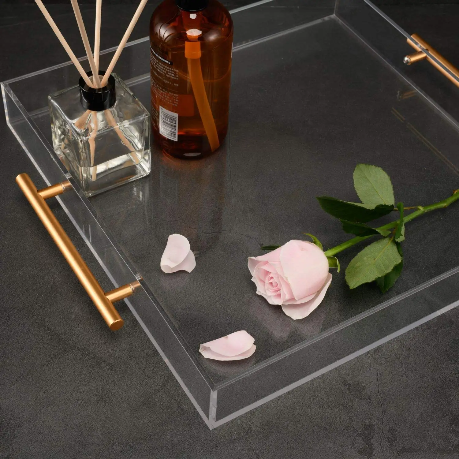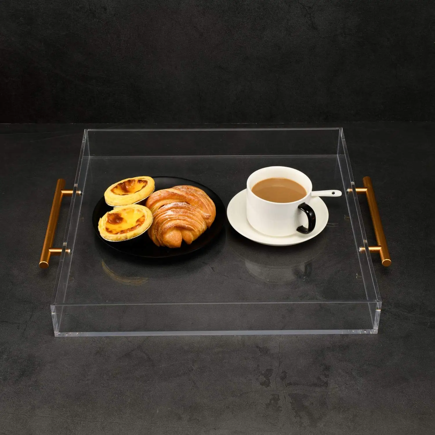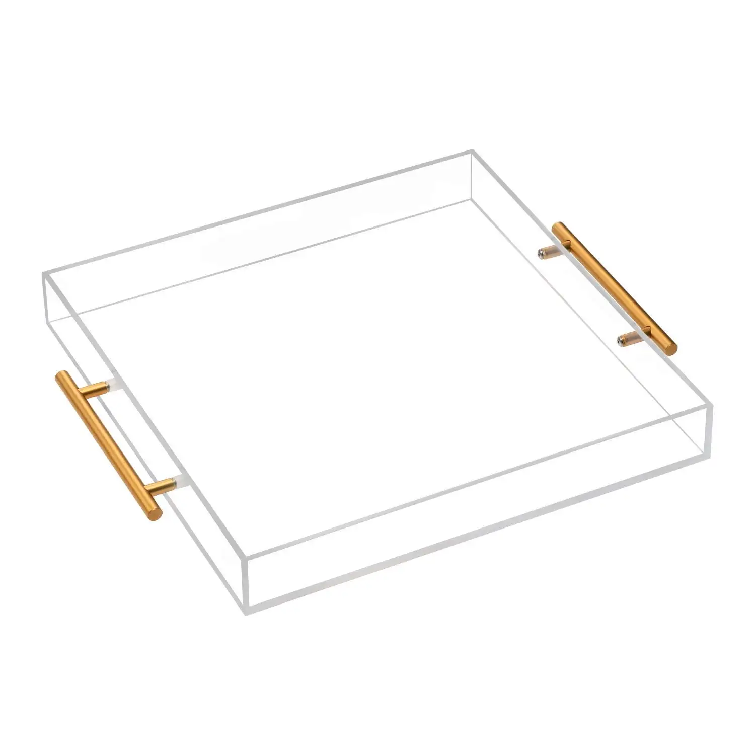 Custom Clear Acrylic Lucite Serving Trays with Metal Gold or Cutting Handles