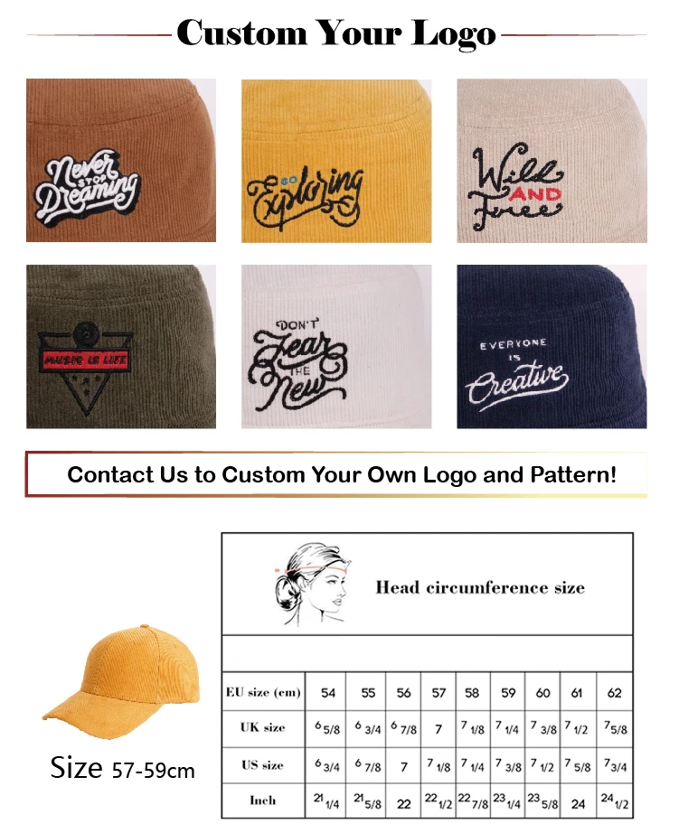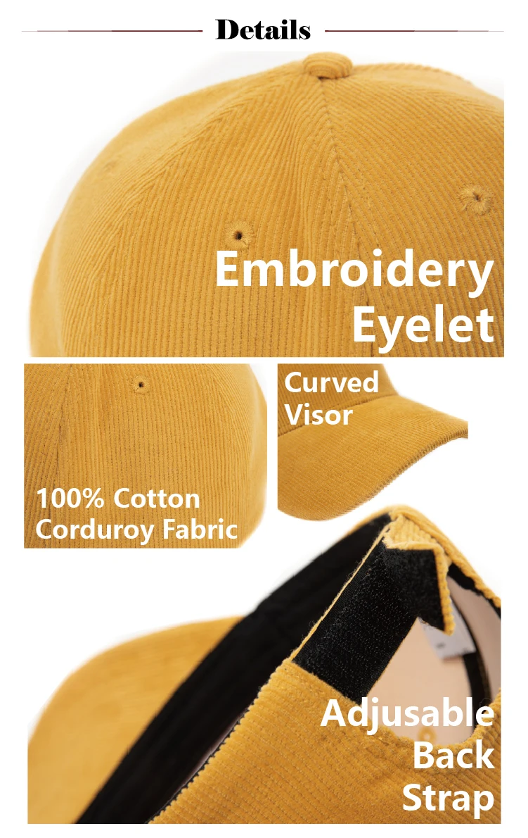 Custom Logo 6 Panel 100% Cotton Adjustable Corduroy Baseball Caps Hat With Logo
