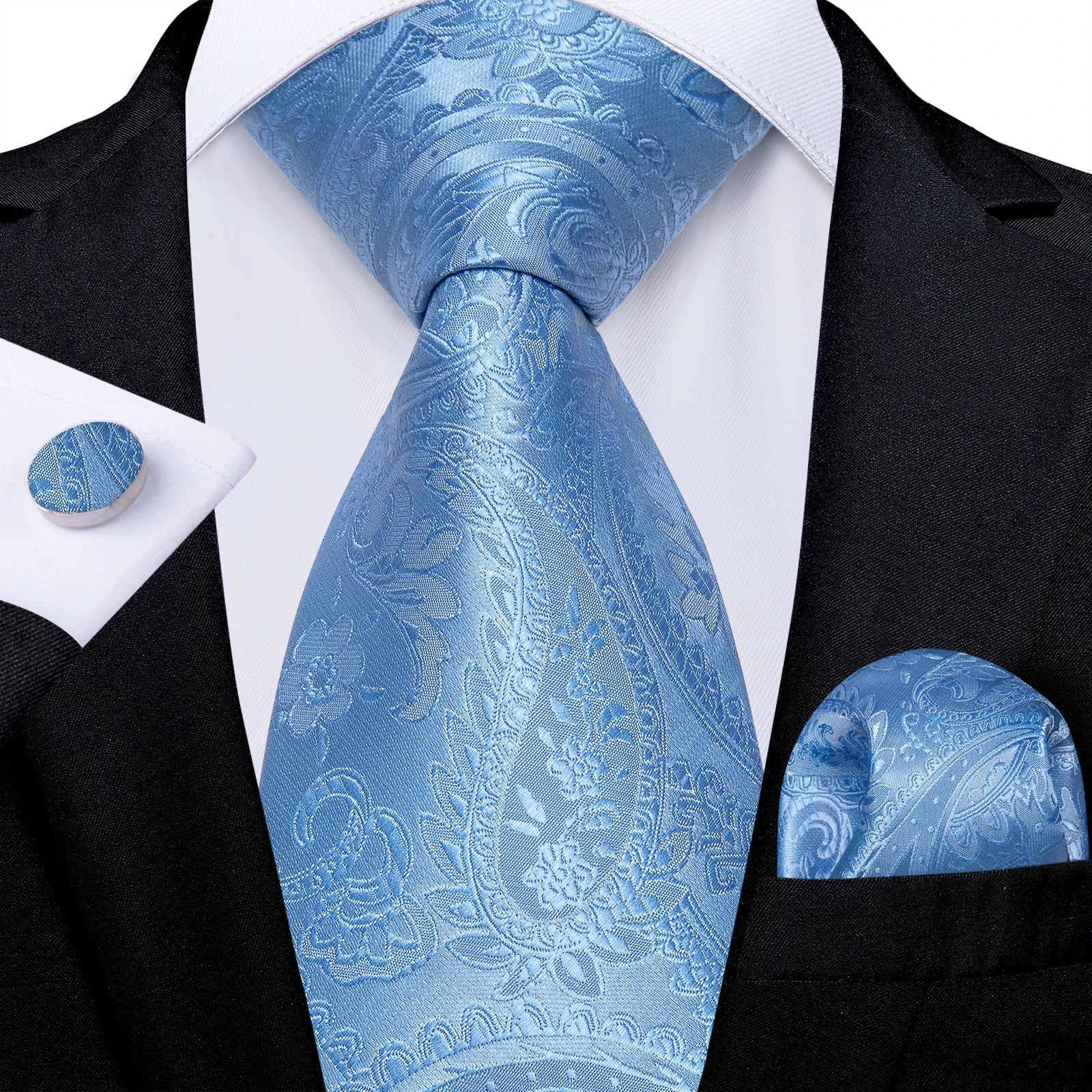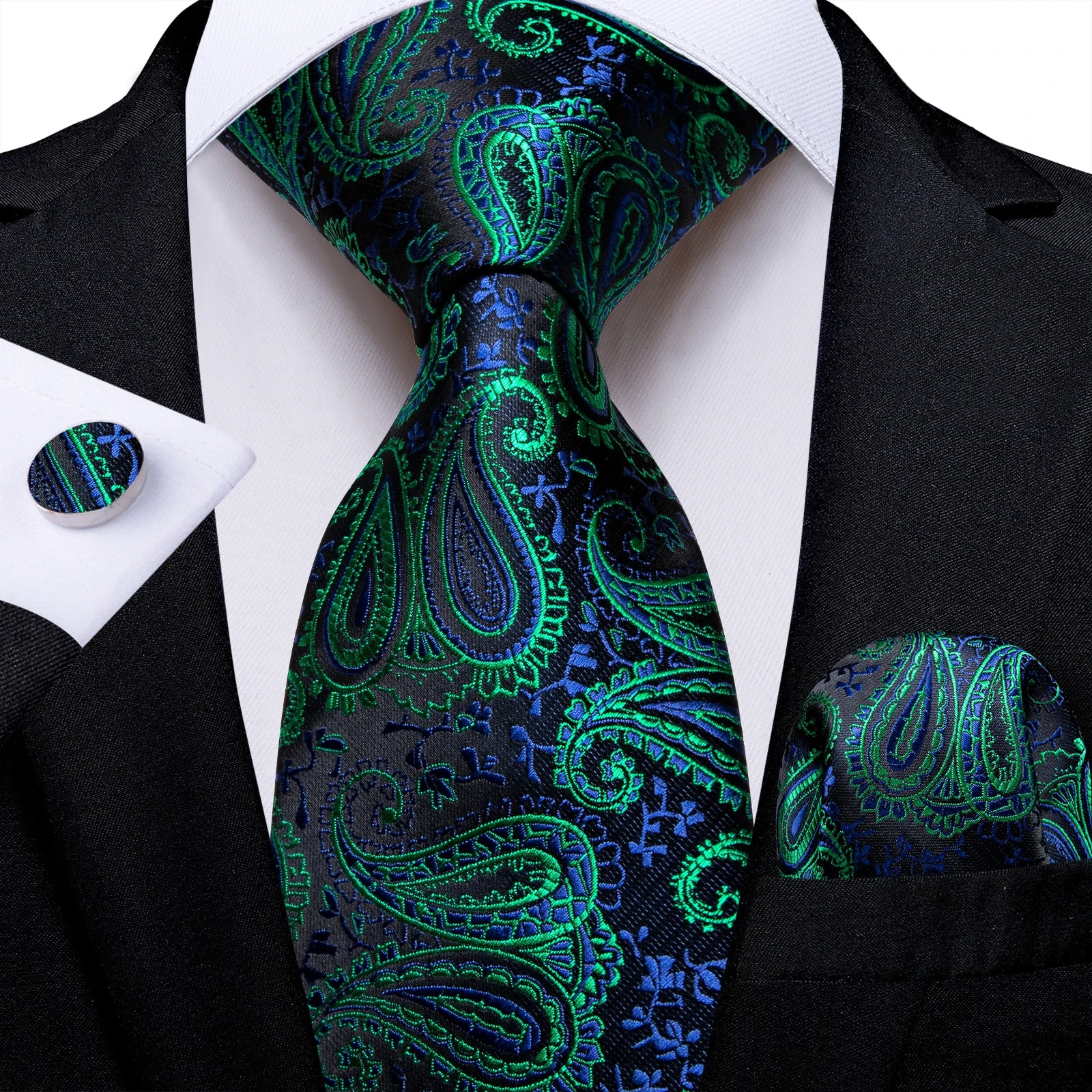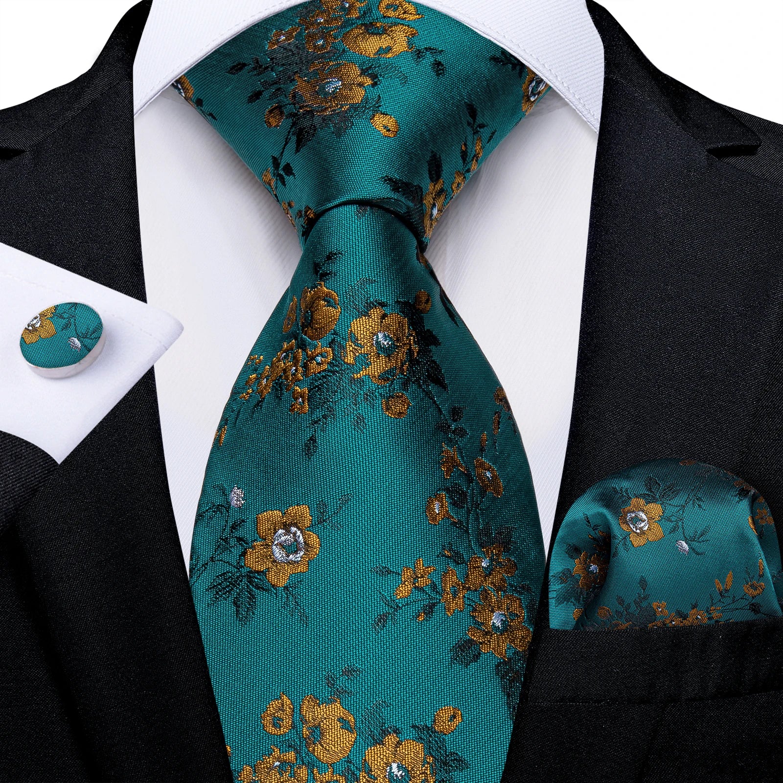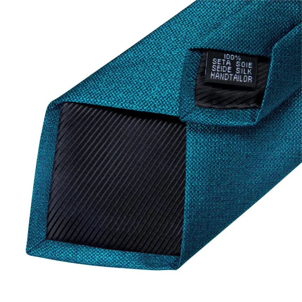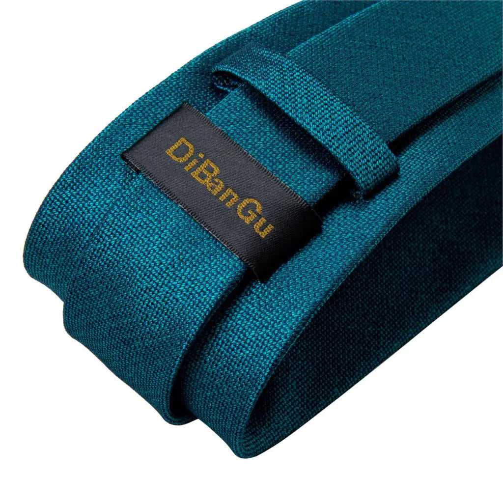 DiBanGu Mens Necktie Teal Green Blue Solid Design Silk Wedding Tie For Men Hanky Cufflinks Tie Set Fashion Bussiness Party