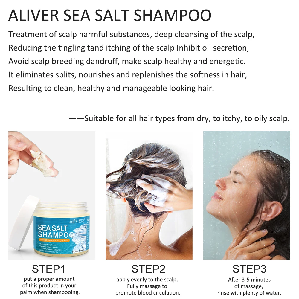 Dropshipping ALIVER hair care shampoo wholesale private label anti-dandruff soothing cleansing scalp sea salt shampoo