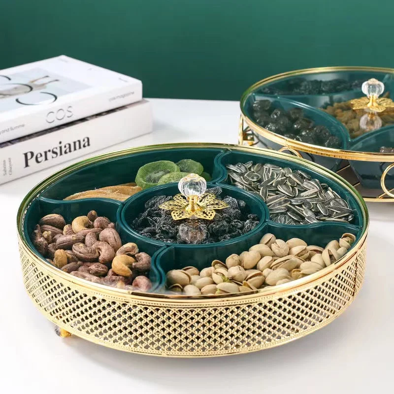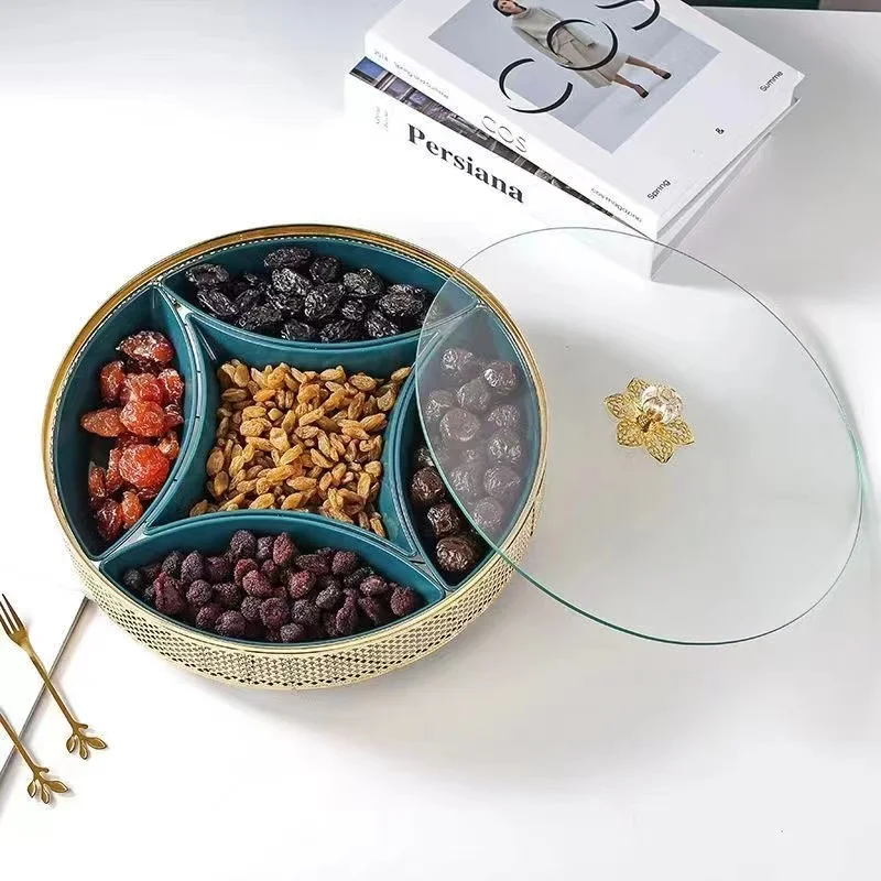 European-style light luxury fruit plate home living room coffee table high-end snack plate nuts candy compartment storage box