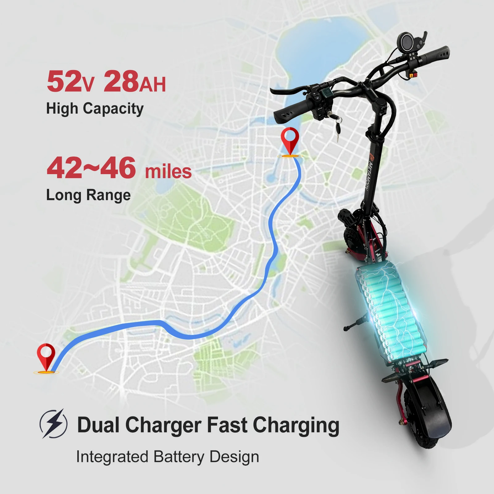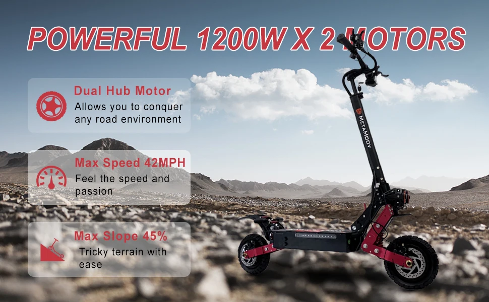 Dual Motor 2400W,the motor is one of the core parts of the scooter. Wechoose the quality DC brushless motor, which is