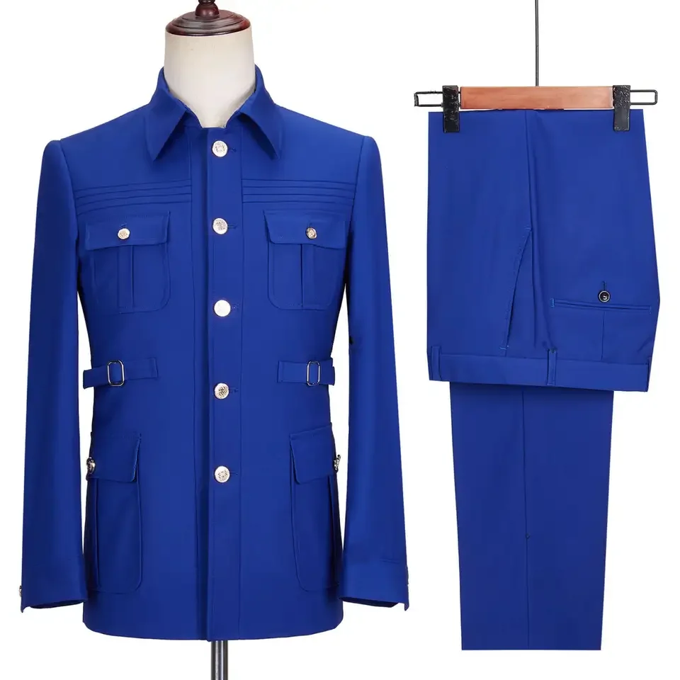 Fashion Turn Down Collar Safari Men's Suits Business Party Groom Performance Prom Casual Tailored 2 pcs Suits Set (Jacket+Pant)
