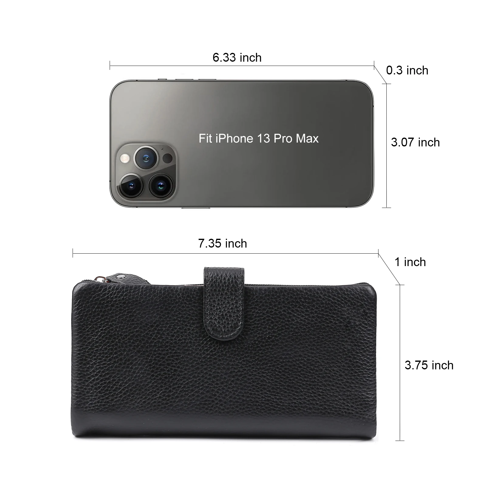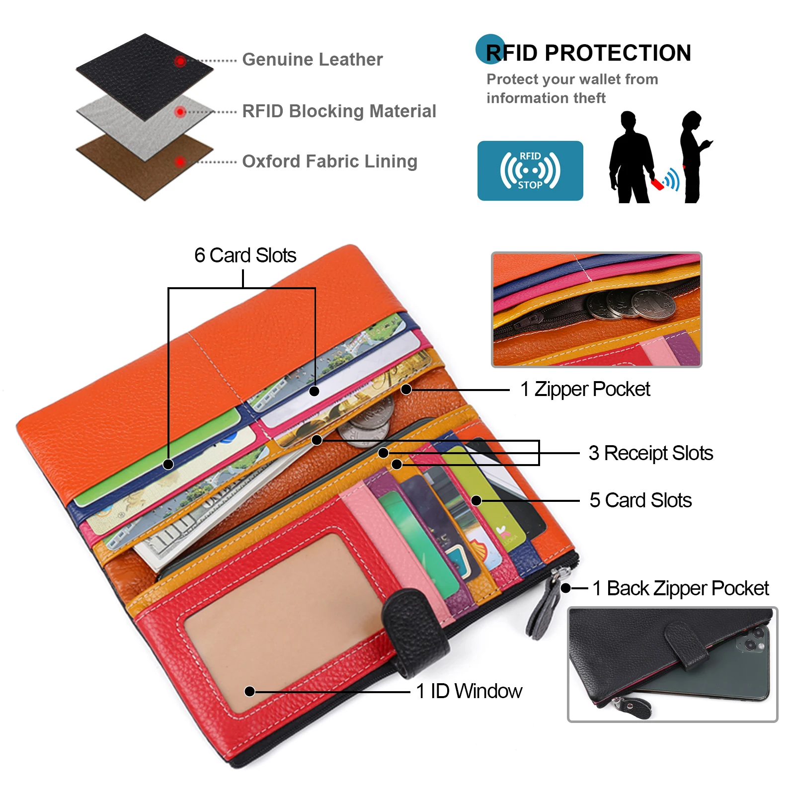 Fashionable Large Capacity Credit Card Phone Holder Organizer Genuine Leather Luxury RFID Blocking Wallet for Women