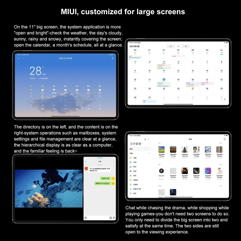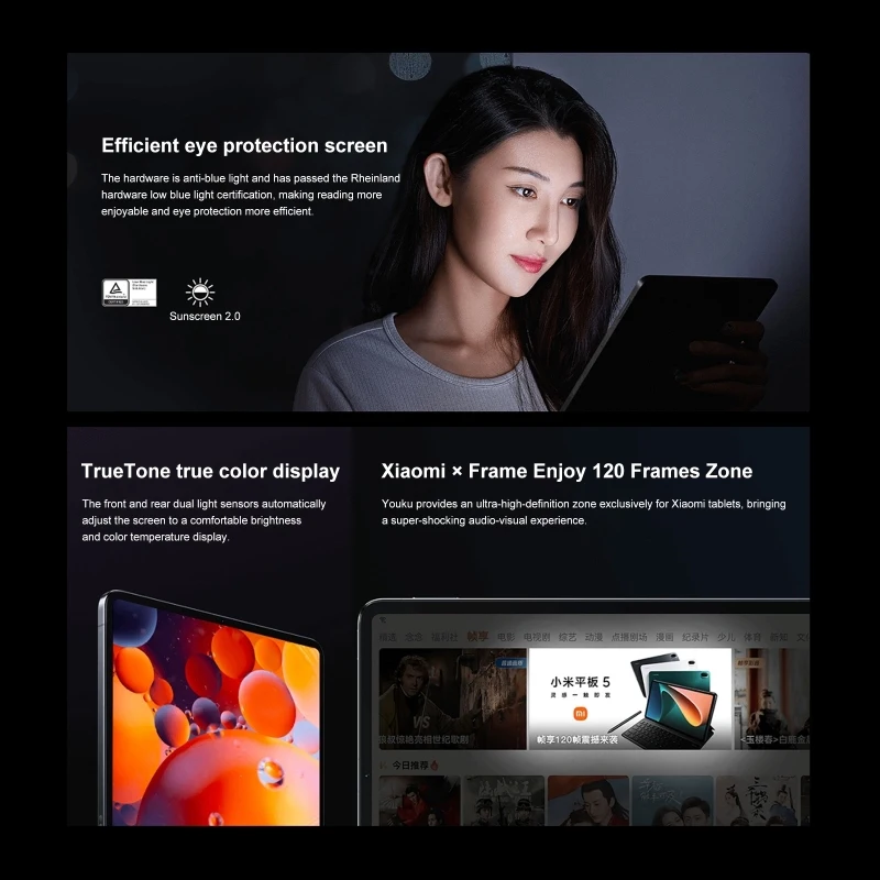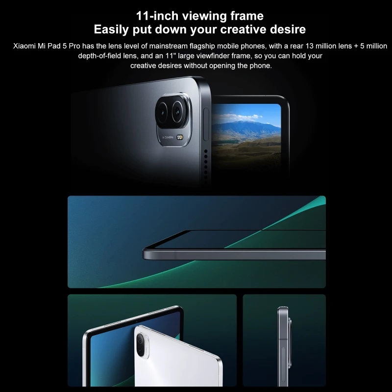 1. 6GB RAM+128GB ROM, LPDDR5 high-speed memory, UFS 3.1 high-speed flash memory. 2. Qualcomm Snapdragon 870 7nm Octa Core up to 3.2GHz processor, high-performance. 3. 11.0 inch screen, smaller body, 2560x1600 WQHD+ resolution, 275 PPI, 1500:1 contrast ratio, 120Hz refresh rate, 120Hz finger touch sampling rate, 240Hz stylus touch sampling rate, support Dolby Vision, reading mode, sunny screen 2.0, TrueTone true color display, Rheinland hardware low blue light certification. 4. Back camera: 13.0MP camera + 5.0MP depth, support document shooting mode V3.0, ID photo, magic elimination, magic cutout, art photo, magic change; Front: 8.0MP camera. 5. Built-in 8600mAh large capacity battery, support 67W charging.