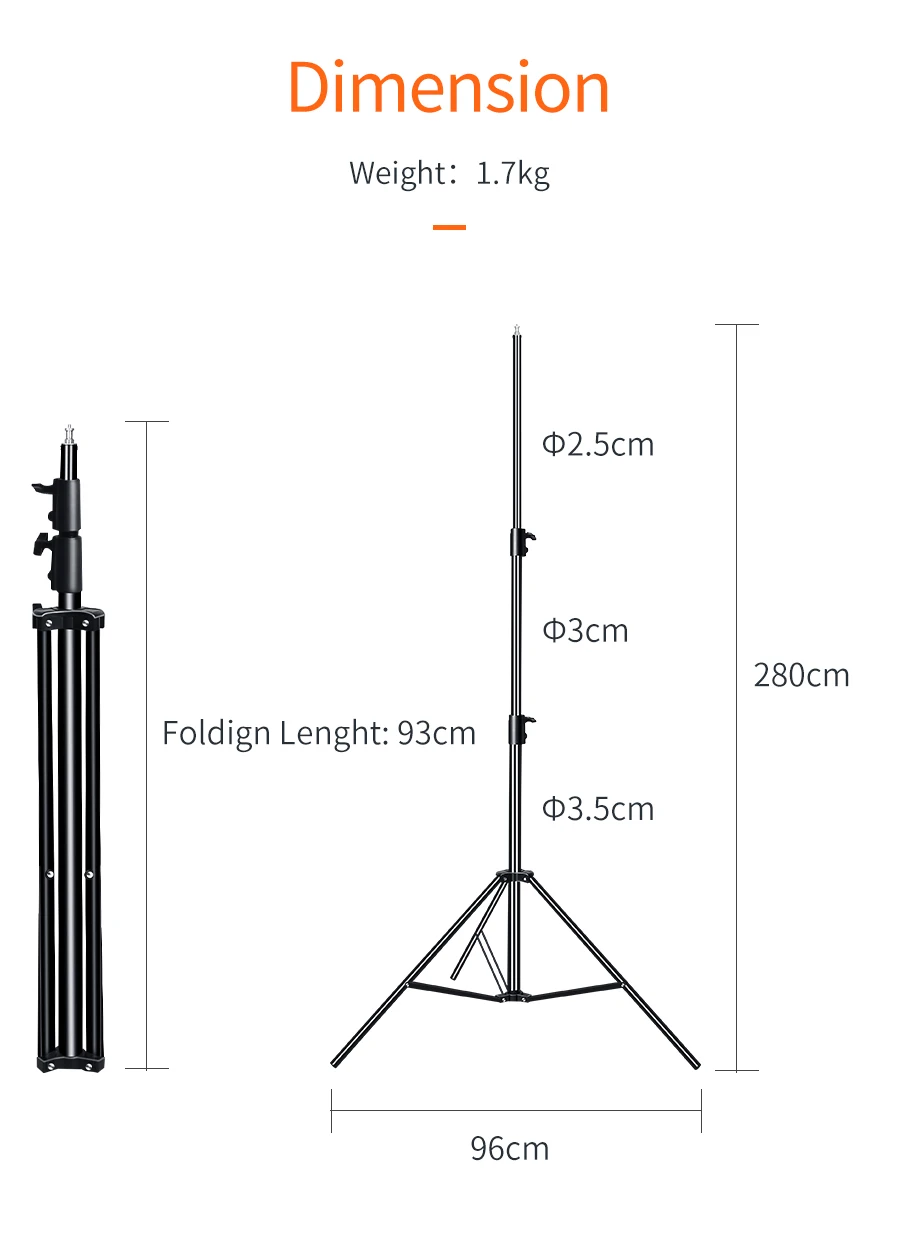This light stand has a maximum height of 280cm.