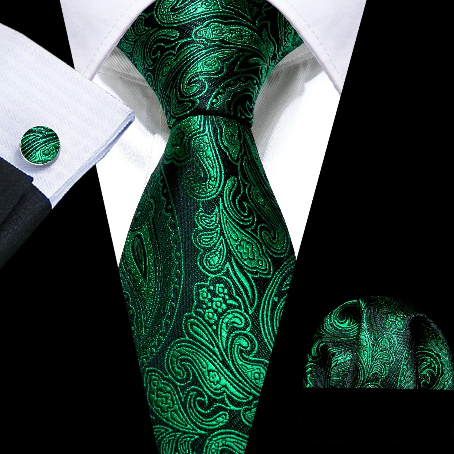 Green Men Tie Wedding Silk Solid Necktie Pocket Square Cufflinks Sets New Suit High Quality Party Business Designer