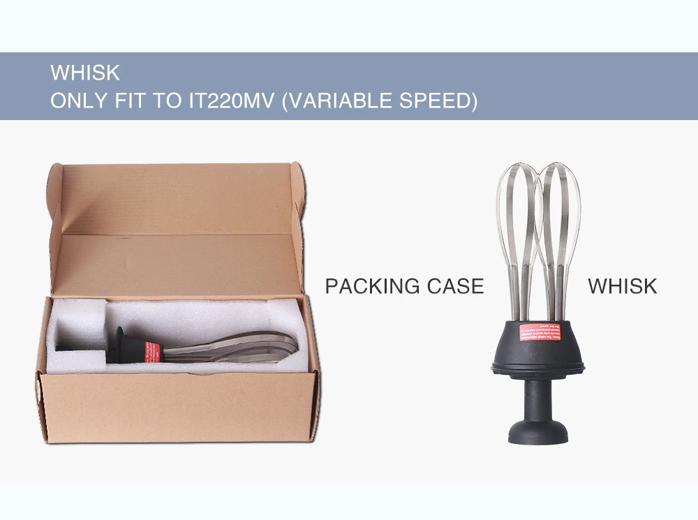 Model : IT500LV+WK250 Voltage : 110~120/60Hz,220~240/50Hz Power : 500W Speed : 4000~16000RPM Net weight : Body 1.15kg +Whisk 0.81kg Length for body : 304mm Diametre for body : φ75mm Length for whisk : 250mm Versatile and efficient: you can quickly process food to achieve different results with an excellent finish. Utmost hygiene:the components are manufactured from materlals sultable for food handling and can be easily removed for fast cleaning. Whisk function You can also hold the appliance by the handle with one hand, leaving the other hand free to hold the bowl, if necessary. While you process the preparation, we recommend that you move the whisk around in the bowl, in order to ensure that the mixture is completely homogeneous. We strongly advise you to keep the whisk from touching the sides of the bowl. For Maximum efficiency,at least one-fifth of the whisk length shoule be immersed,But never ommerse the whisk holder into the preparation.