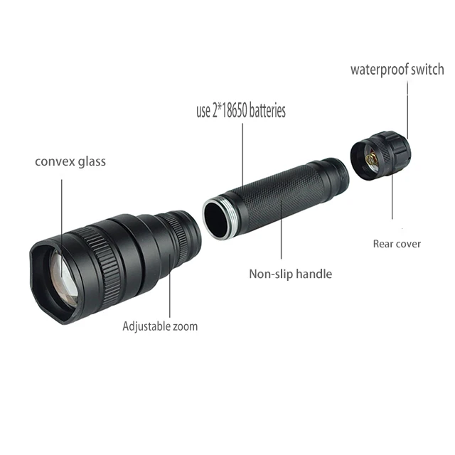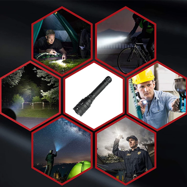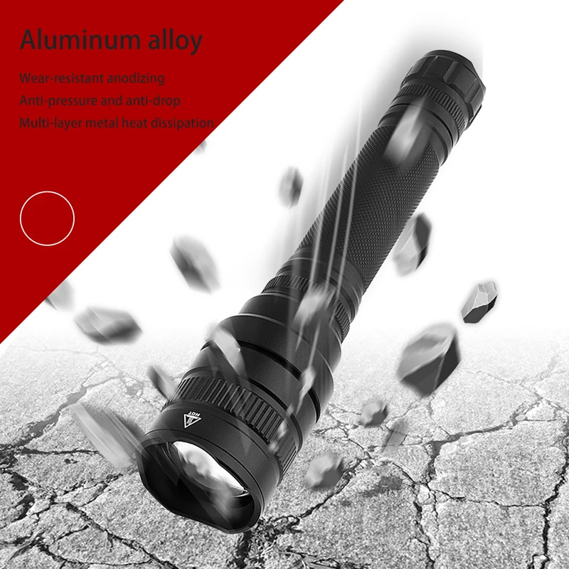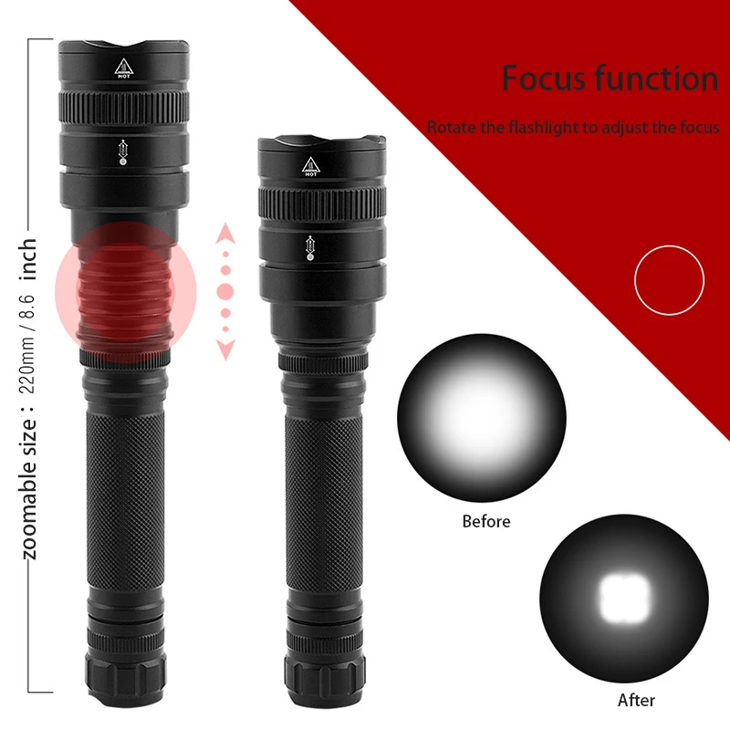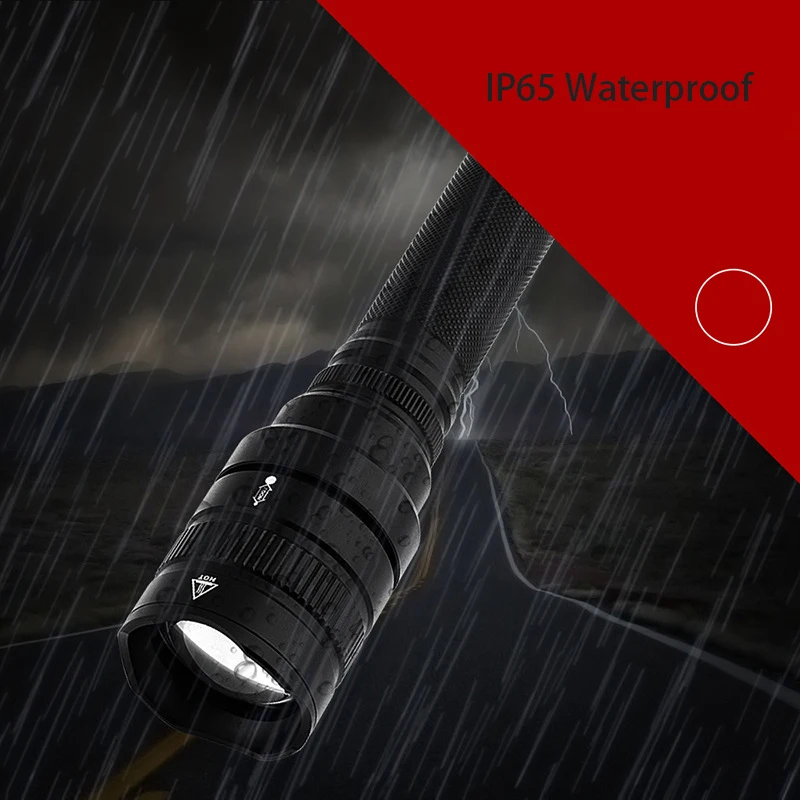High Power 3000LM Flashlight Torch 2*18650, Super Bright Zoom Powerful Torch Tactical led Flashlight