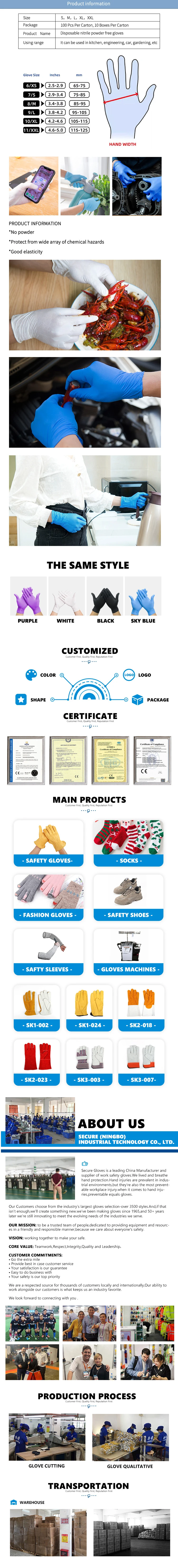 High Quality Heavy Duty Industrial Disposable Five Powder Nitrile Gloves With Food Certification100 pieces/box, 10 boxes/box