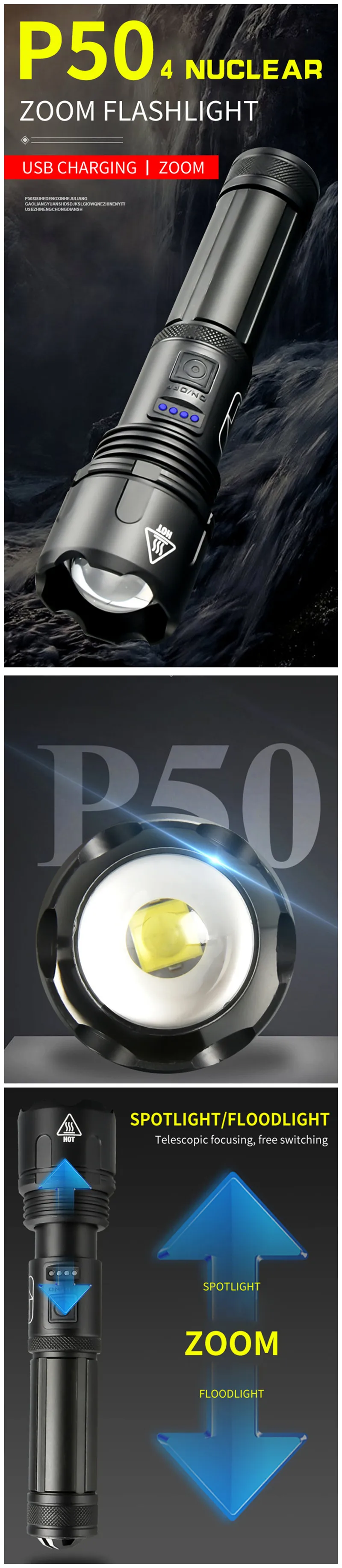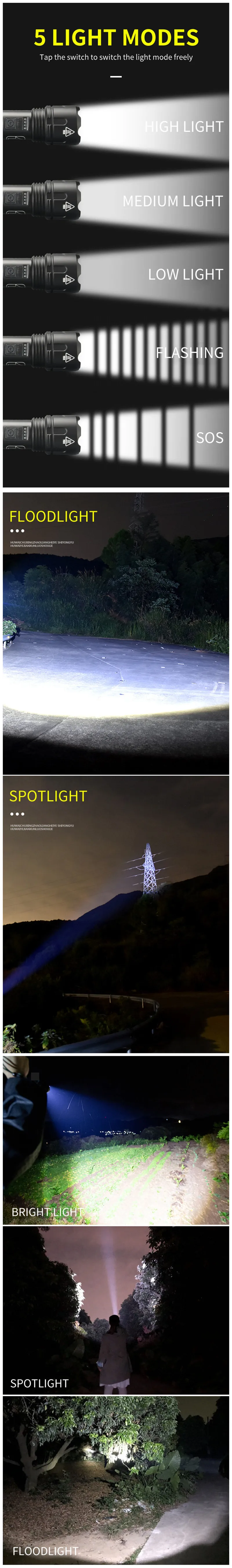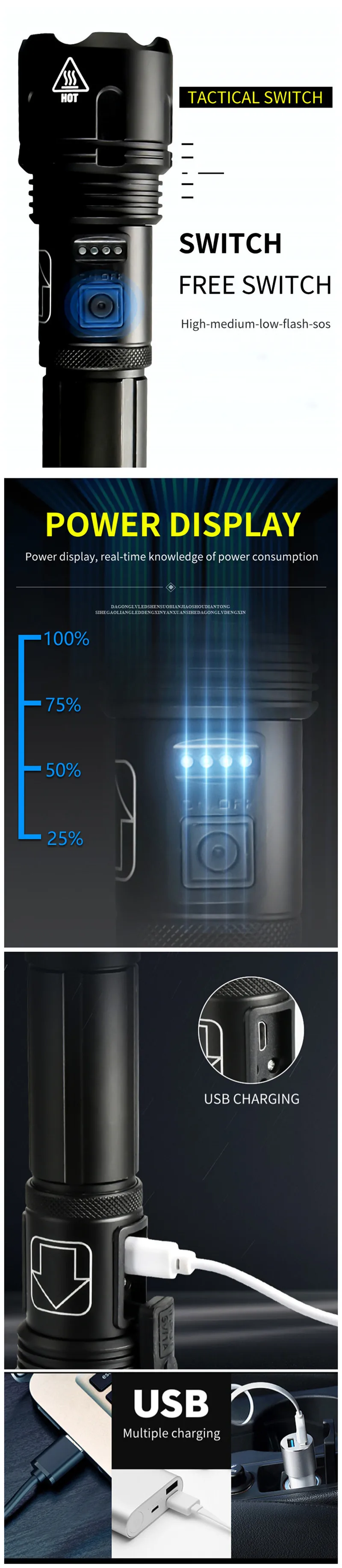 HLS Factory Waterproof 3000 High Lumens Rechargeable Tactical XHP50 Flashlight HLM Most Powerful Outdoor Portable LED Flashlight