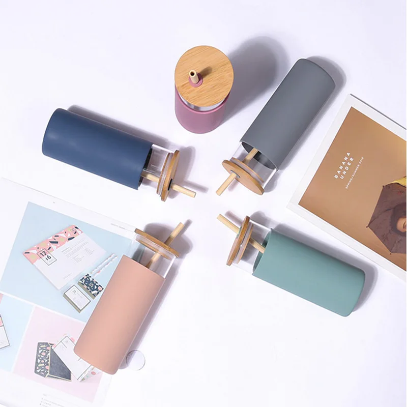 Hot Sale 20oz Borosilicate Glass Tumbler Glass Water Bottle With Straw Silicone Sleeve Bamboo Lid