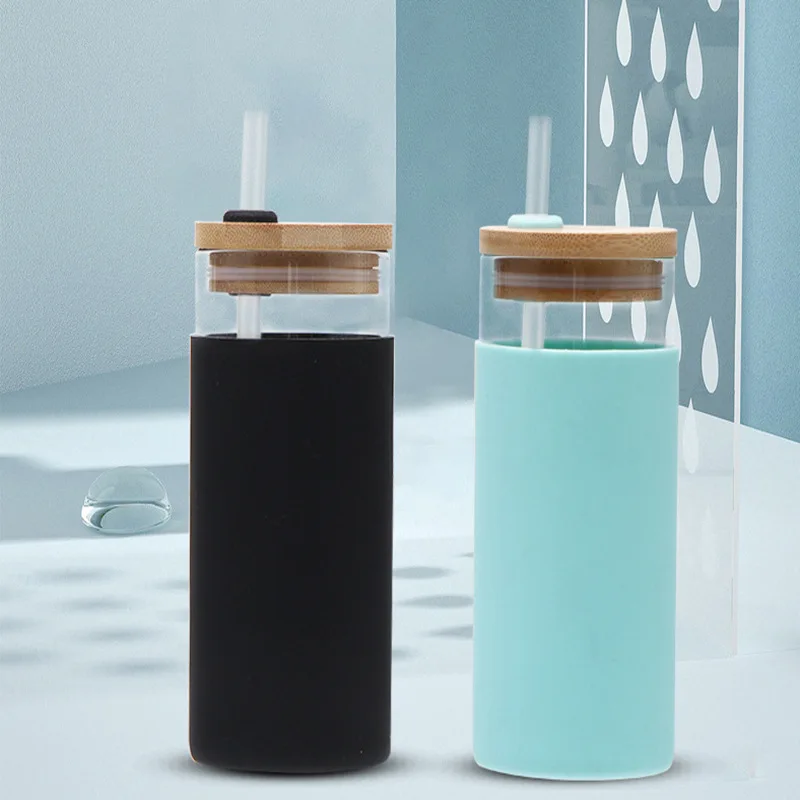 20oz Glass Tumbler Glass Eco Friendly Water Bottle Straw Silicone Protective Sleeve Optional Colors Bamboo Lid