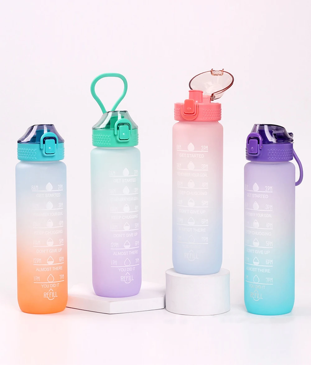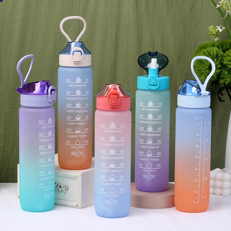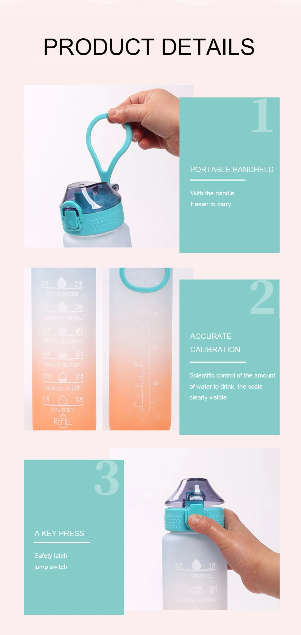 Hot Sale Gradient Plastic Sports Water Bottle For Outdoor Fitness Gym Motivational Water Bottle With Time Marker
