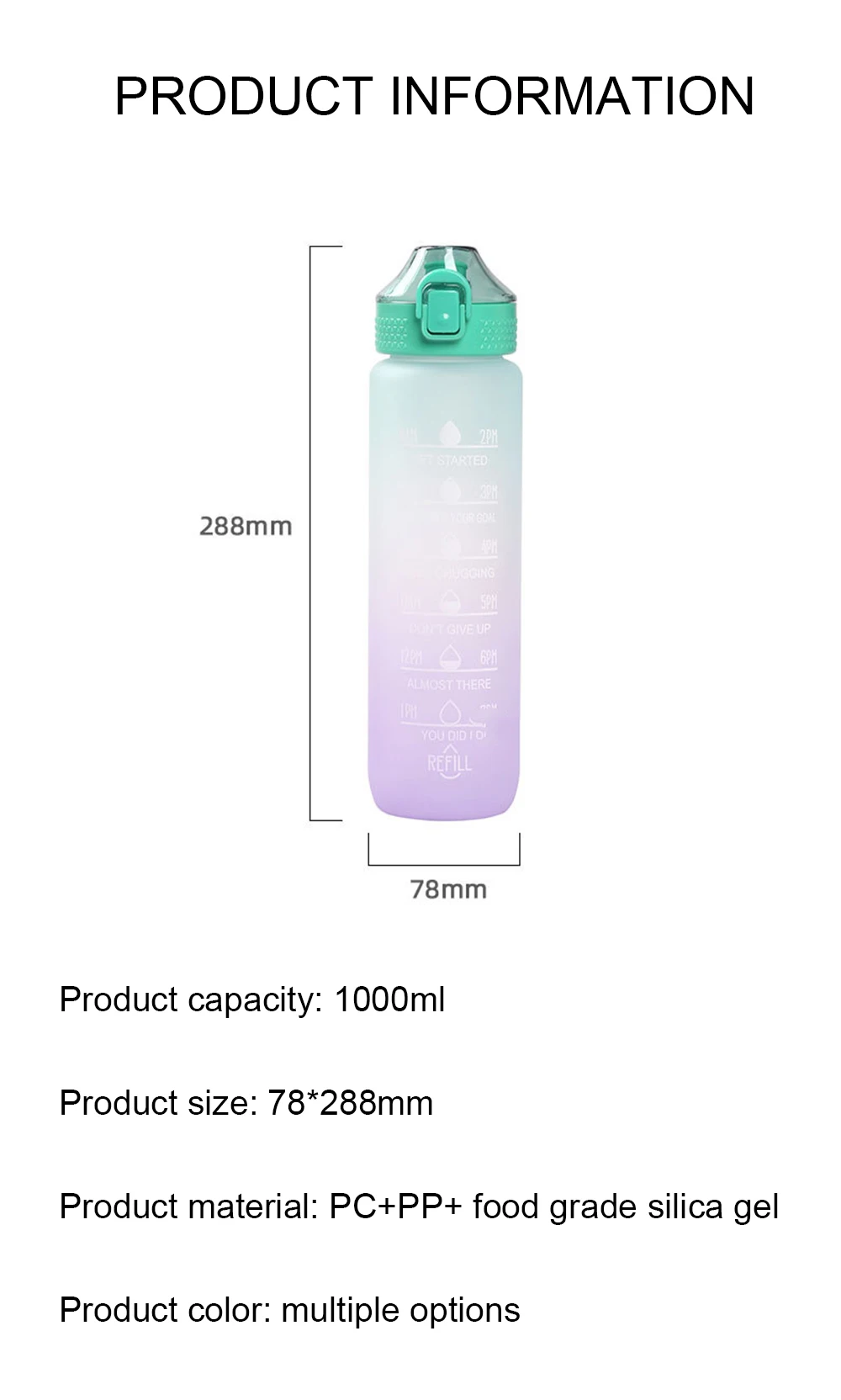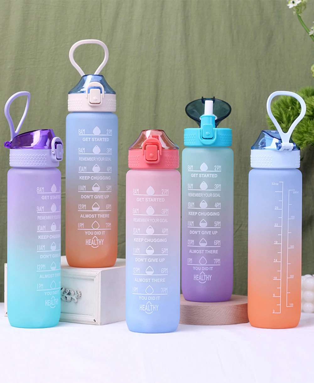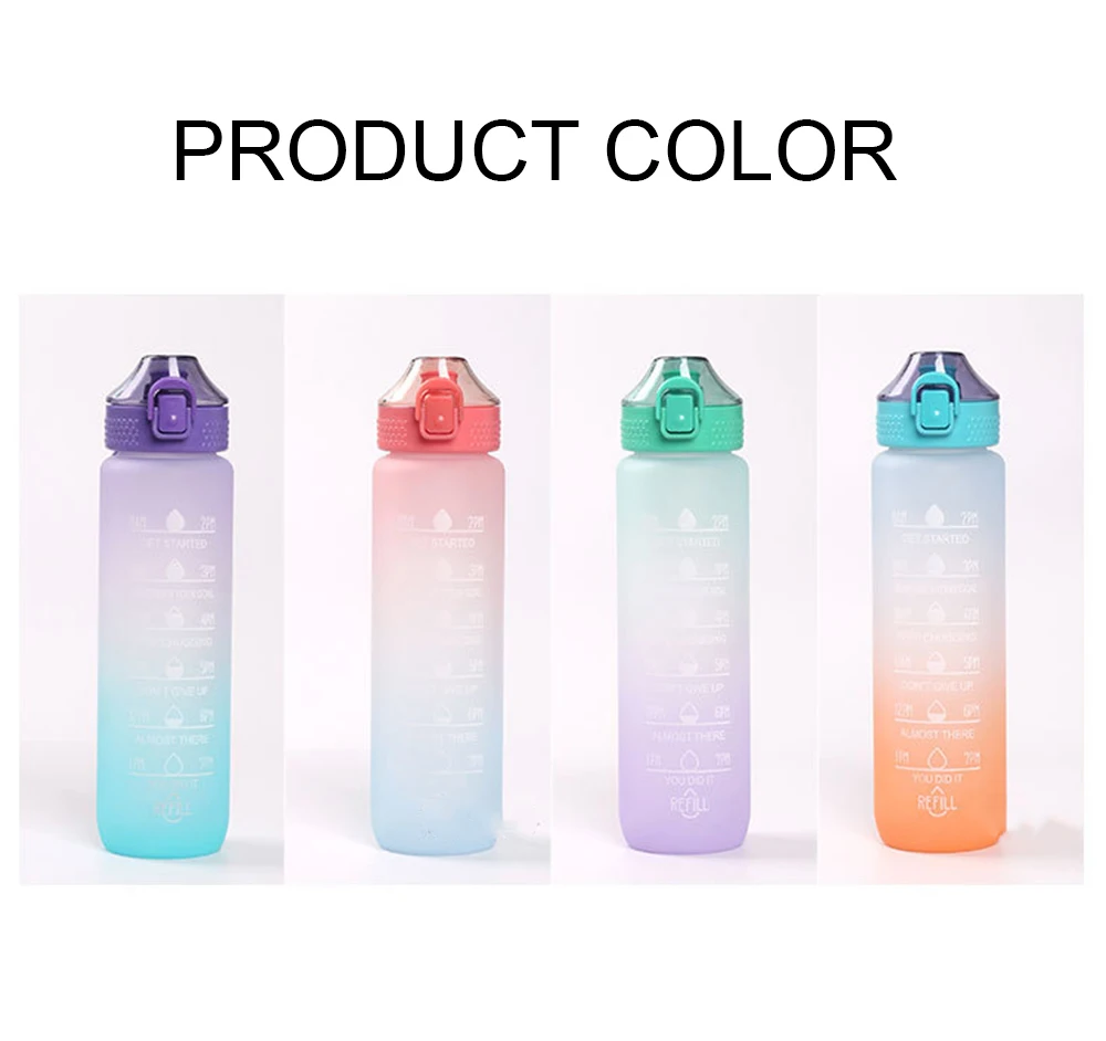 Hot Sale Gradient Plastic Sports Water Bottle For Outdoor Fitness Gym Motivational Water Bottle With Time Marker
