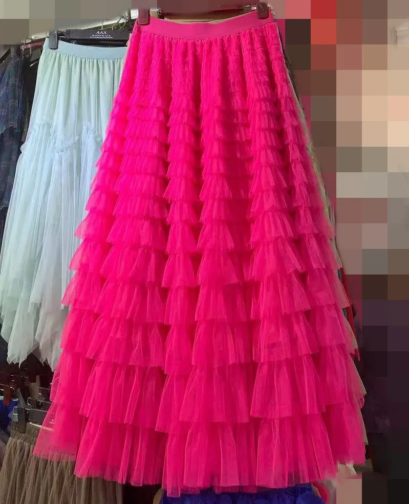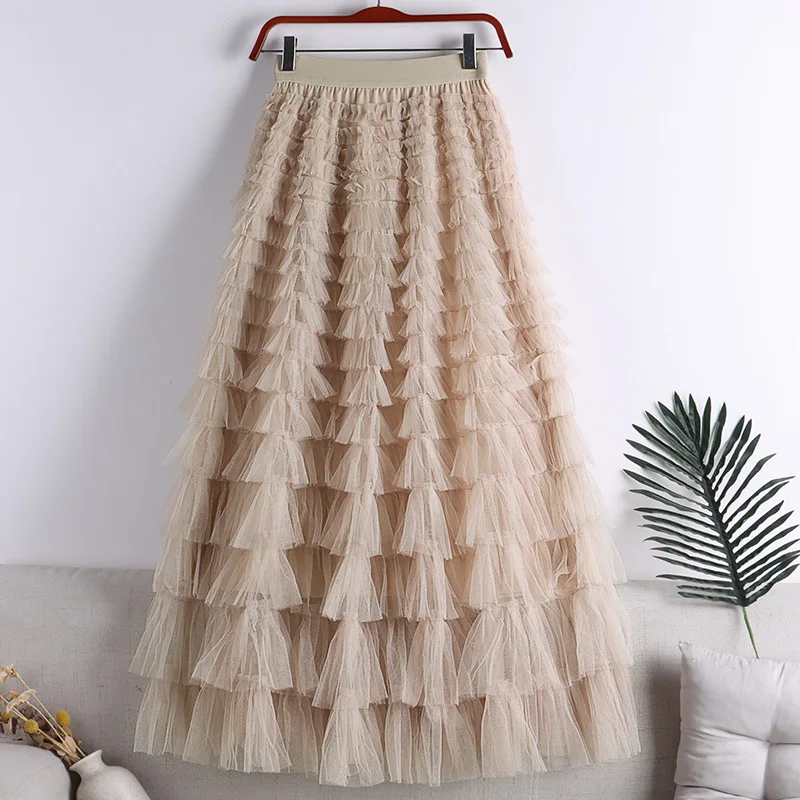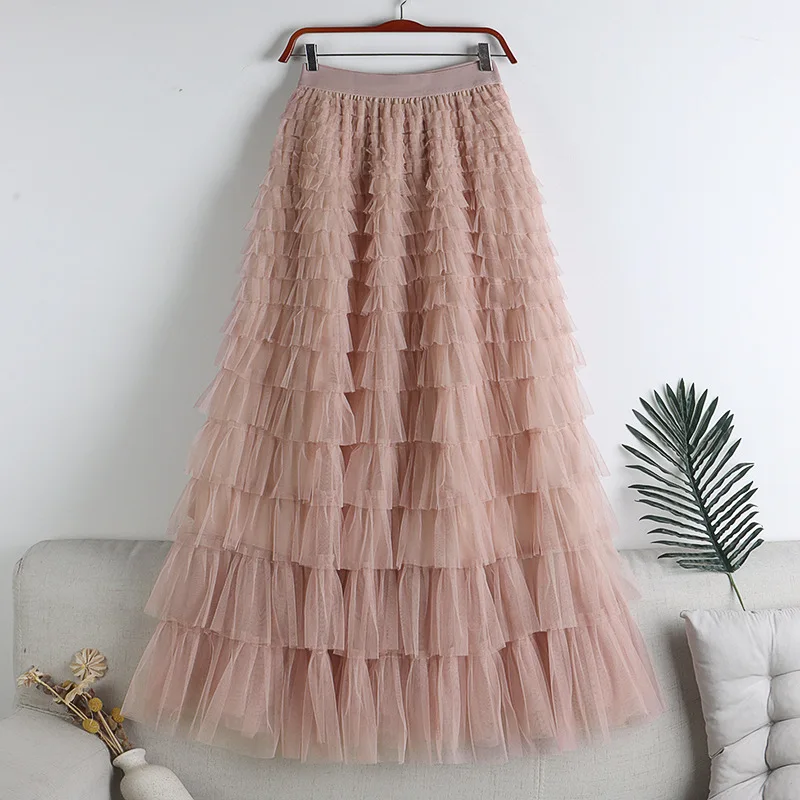 Hot Sale New Autumn Multi-layer Mesh Patchwork Fashion Skirt Long Skirts For Women