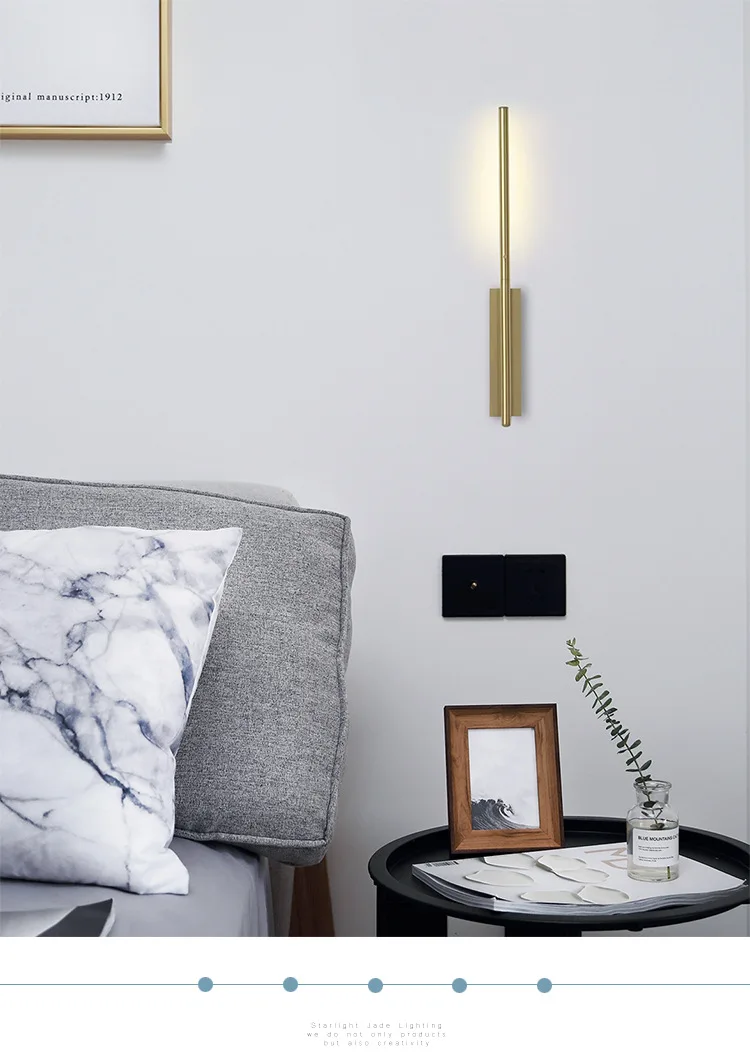 Hot selling LED patch golden tube minimalist adjustable home lighting modern long wall lamp for bedside