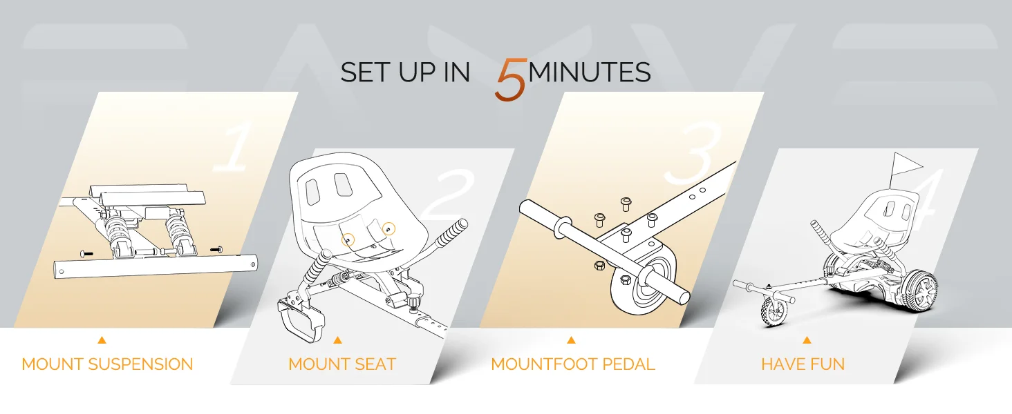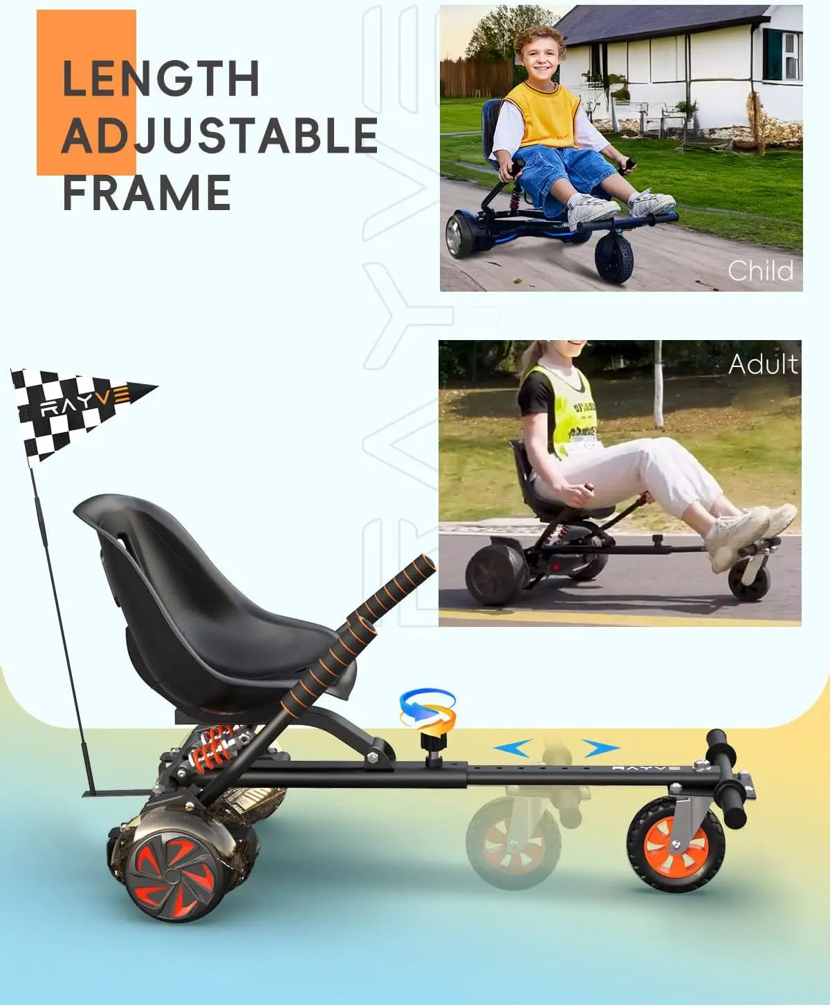 Hoverboard Attachment S1 with Rear Shock Absorption, Hoverboard Go Kart Accessory for 6.5" 8" 10" Hover Board, Adjustable Frame