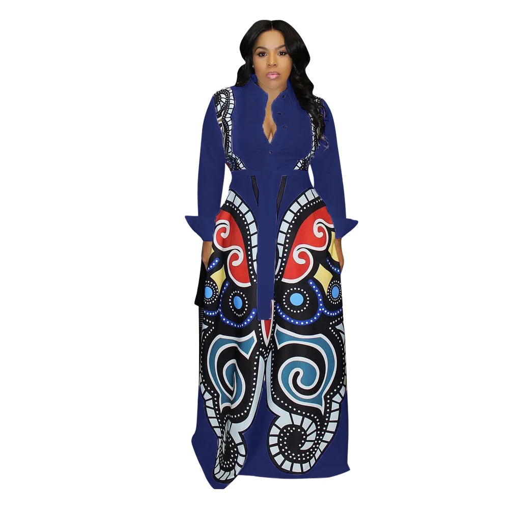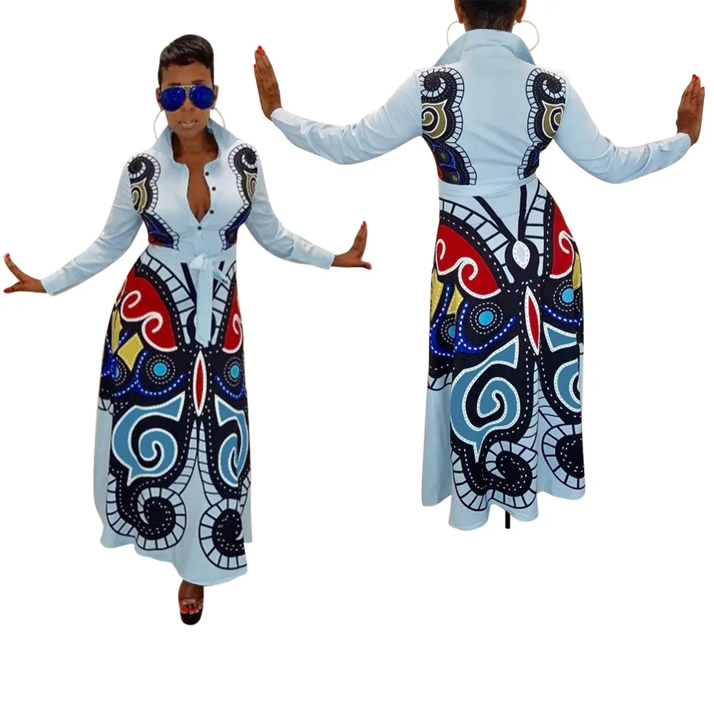 In Stock Butterfly Printed Shirt And Big Dress Elegant Party Long Maxi Dress For Women