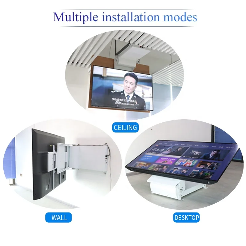 JGST Stock swivel 0-105degree Adjustable ceiling 75 inch tv lift mechanism with Remote motorized tv lift ceiling mount bracket