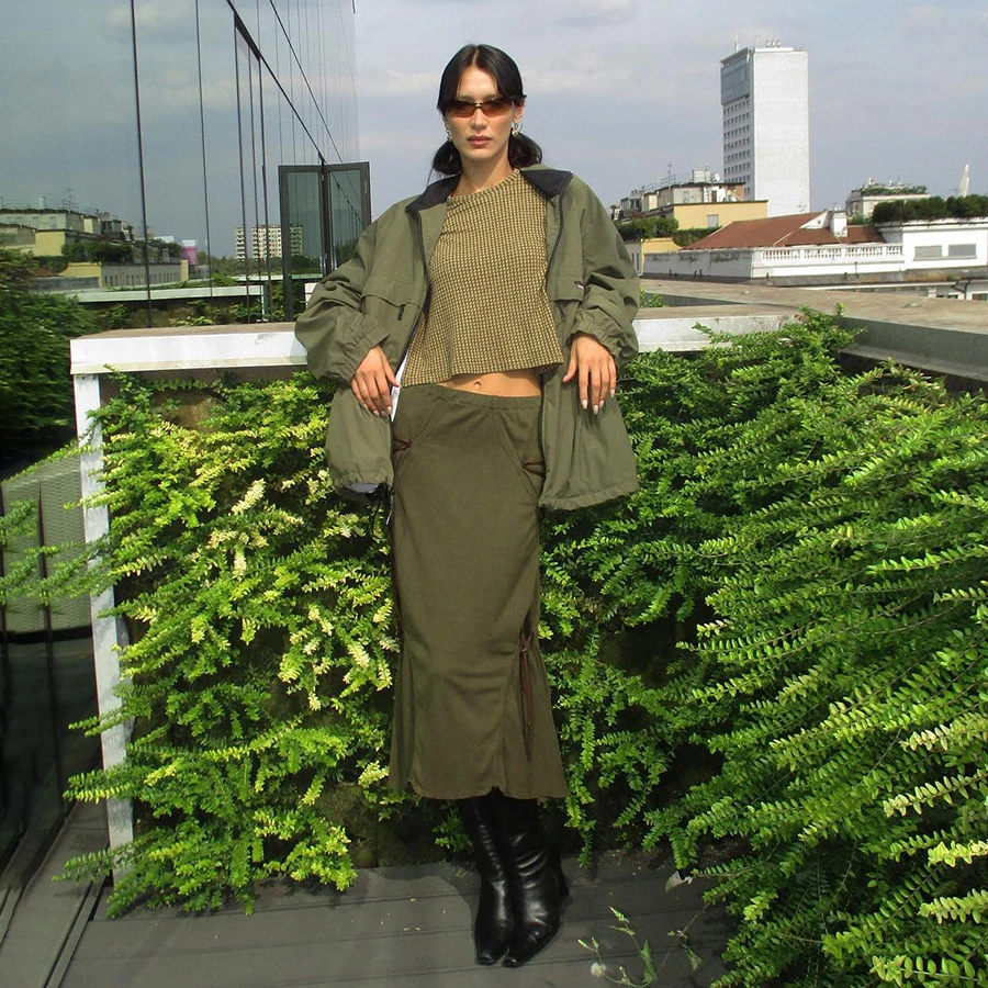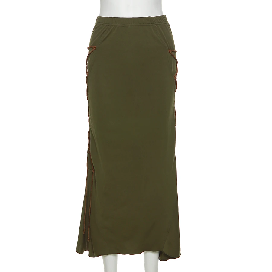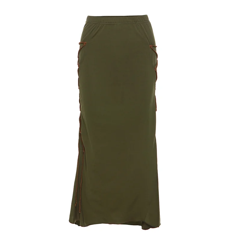 Kliou K22J22742 stretchy bodycon maxi skirt long pencil cargo skirt solid high waist tight maxi skirt woman fashion