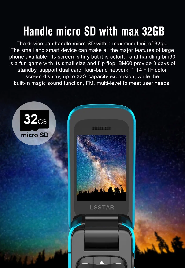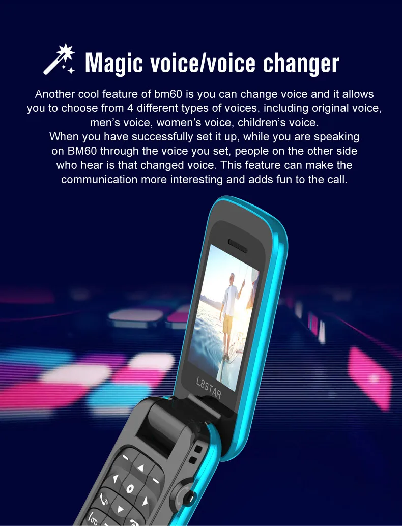 L8STAR BM60 1.14 Inch Magic Voice Changer Small Size Mini Cute Flip Feature mobile Phone
