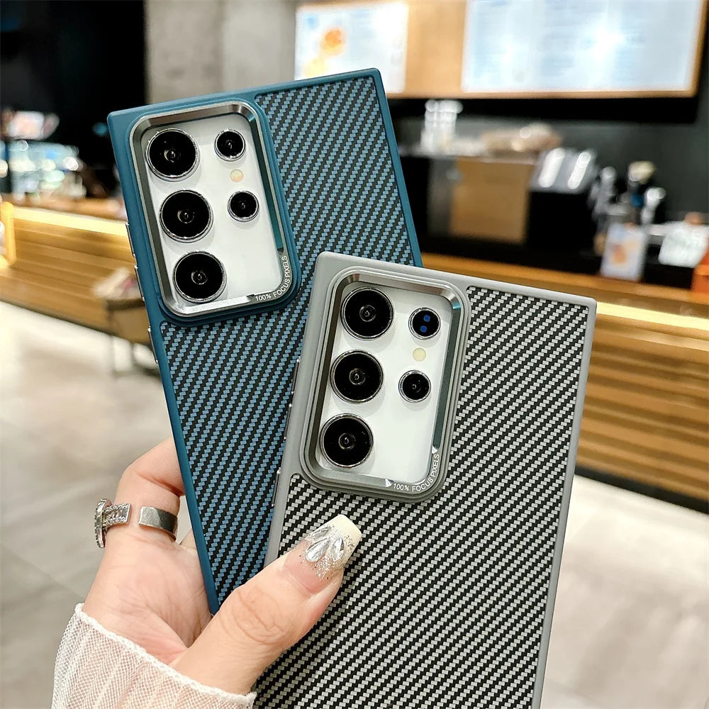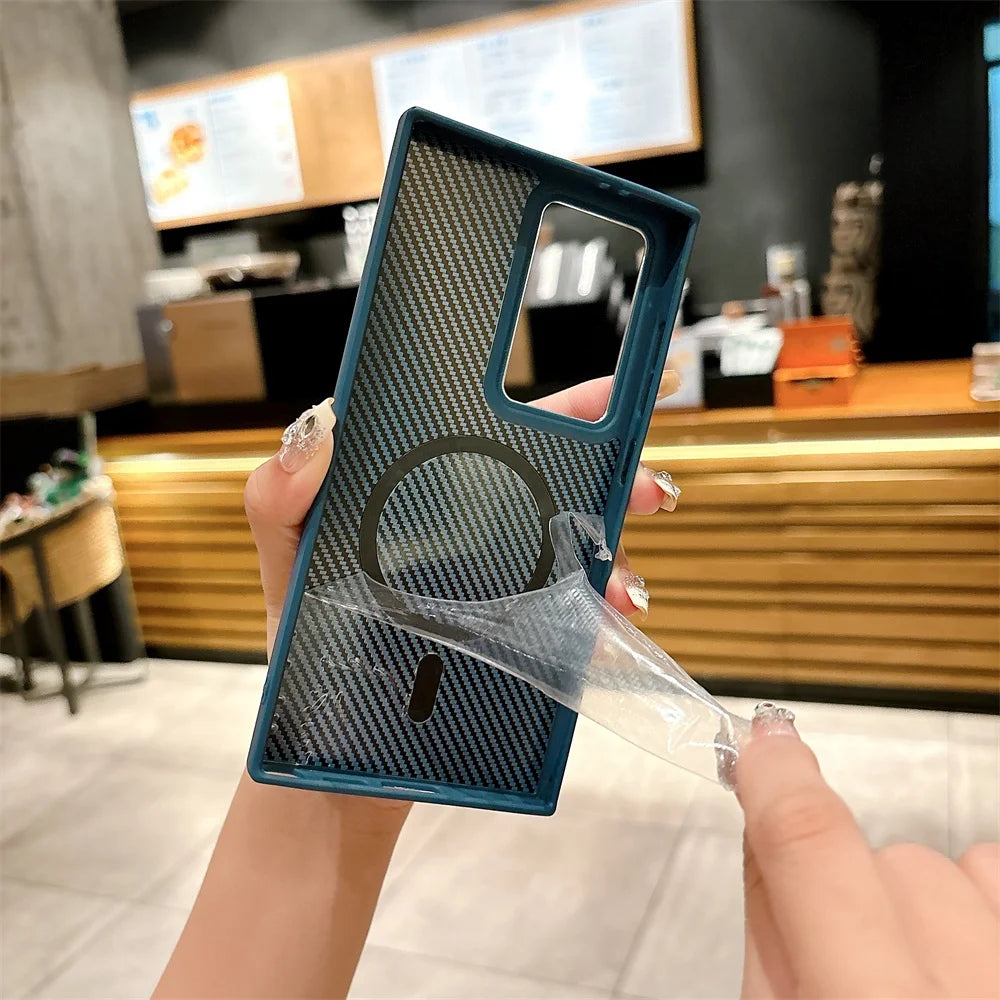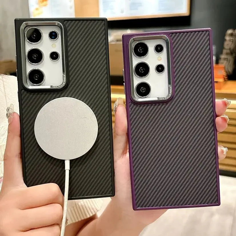 Luxury Carbon Fiber Pattern Armor For Magsafe Case For Samsung Galaxy S24 Plus Ultra Magnetic Wireless Charge Matte Hard Cover