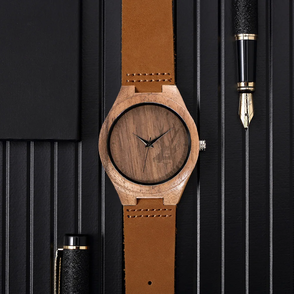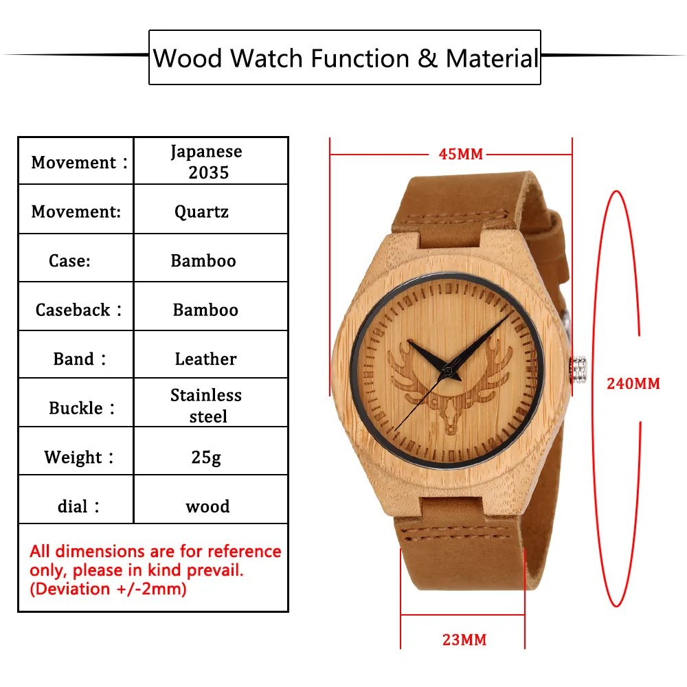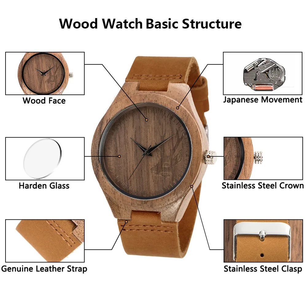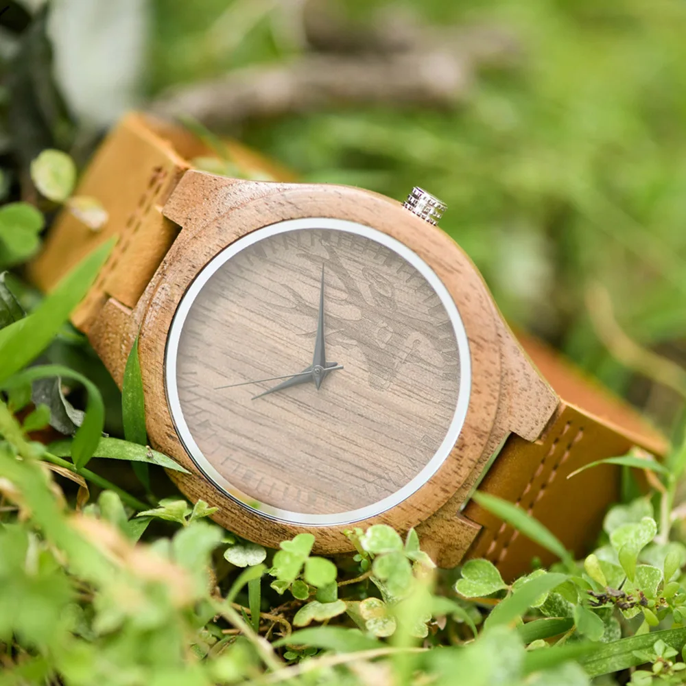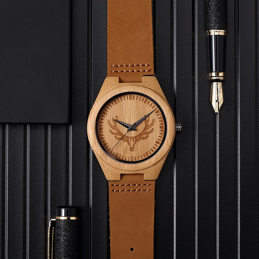 Luxury Classical Elk Head Natural Wooden Watches With Genuine Cowhide Leather Lovers Luxury Wristwatch Mens Wood Watch