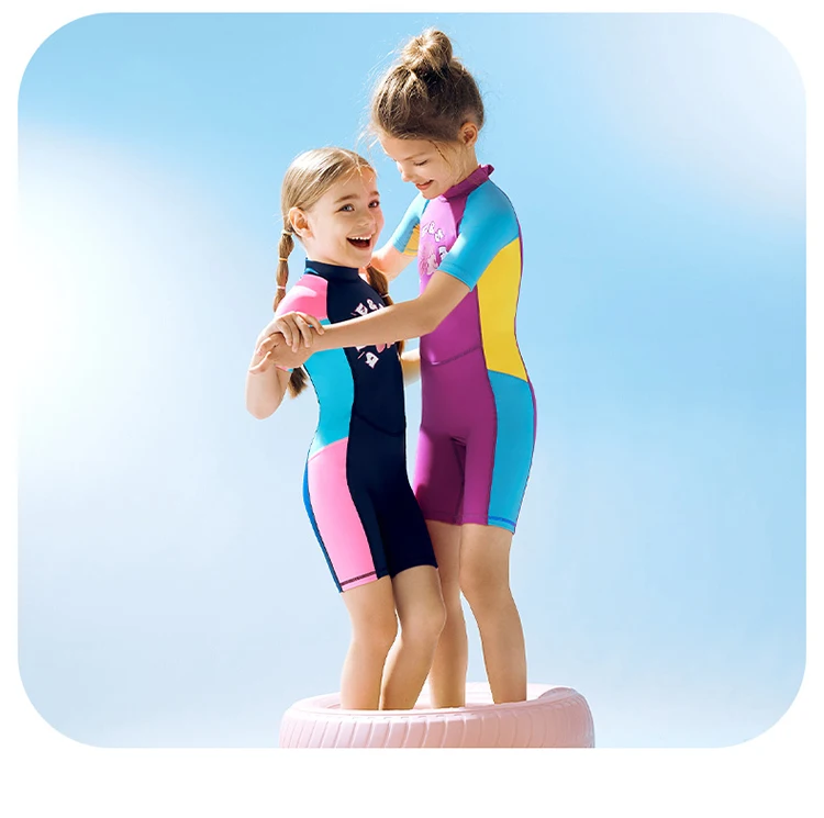 2023 Children Swimwear Beachwear Quick Dry One Piece Swimsuit UPF50 Swimming Clothes Short Sleeve Swim Suit for Kids Girls
