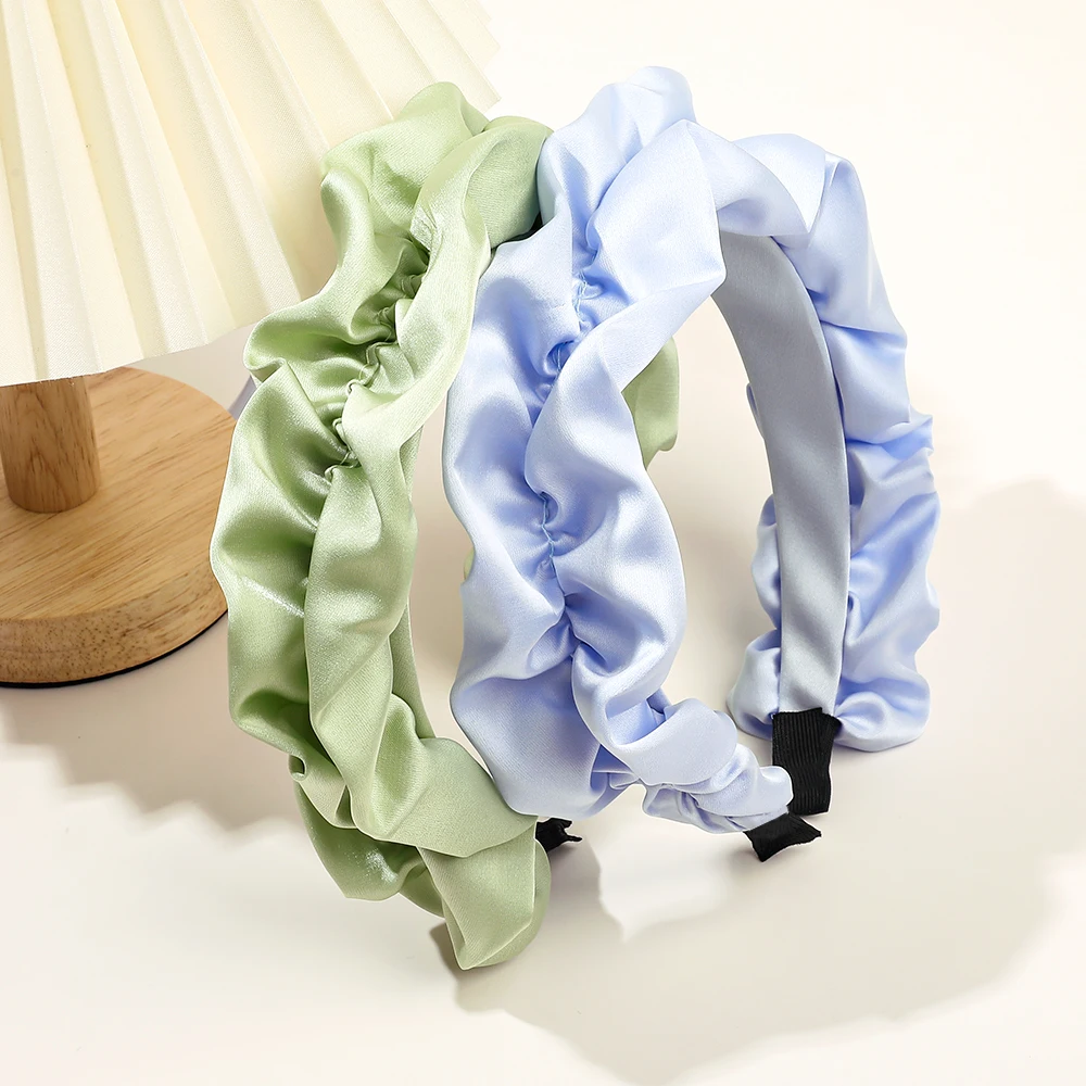 2023 Satin Ruched Headband Women's Fashion Summer Colorful Cloth Headbands for Face Washing Skin Care Headband Hair Accessories