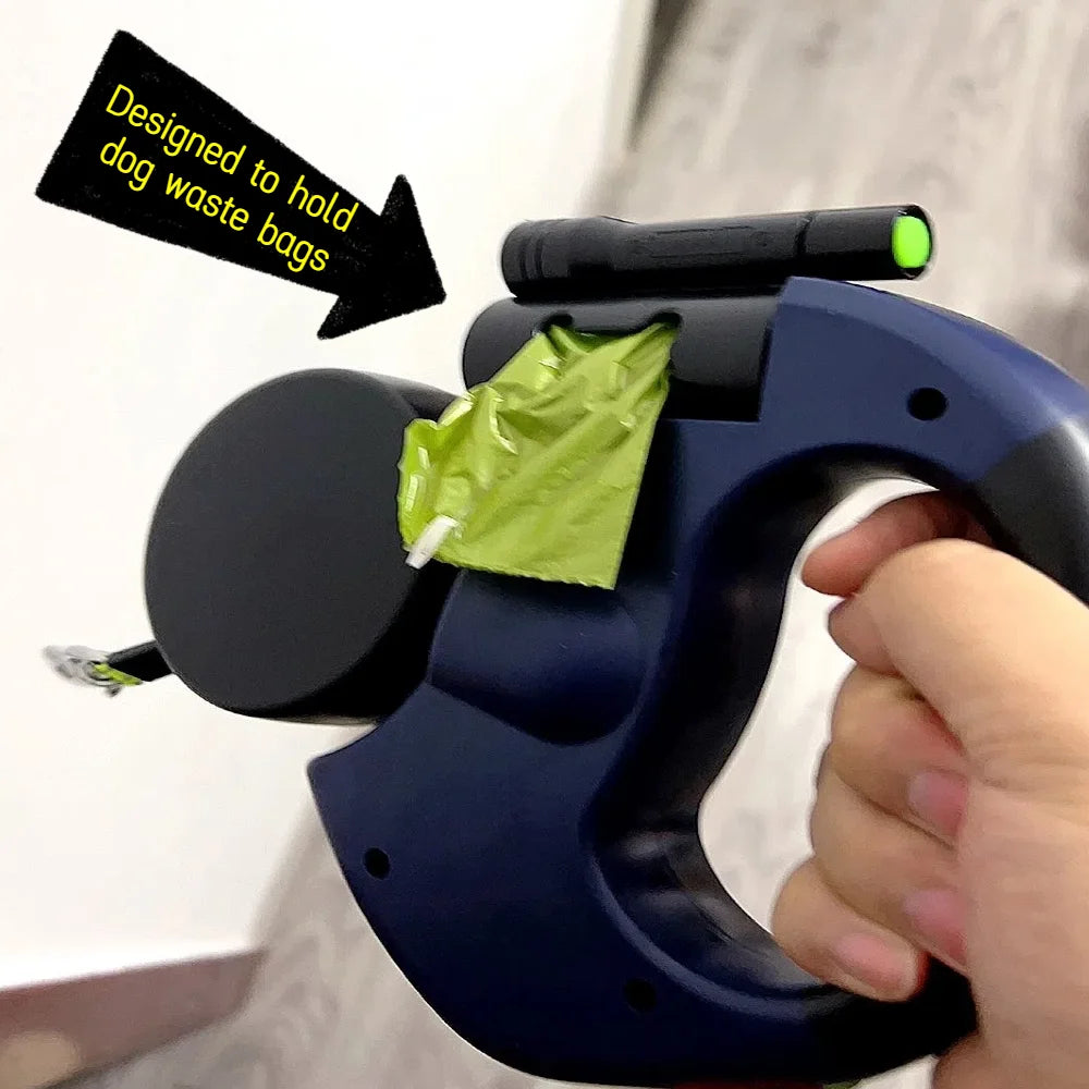 3in1 Double Head Dog Leash Flashlight Poop Bag Dispenser Dual Reflective Pet Cat Leash Automatic Extendable Puppy Traction Rope