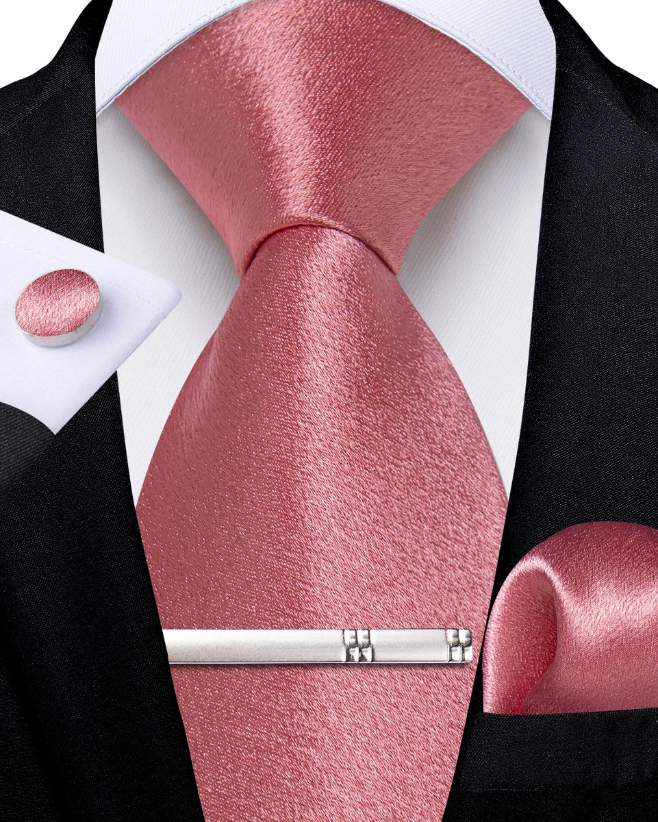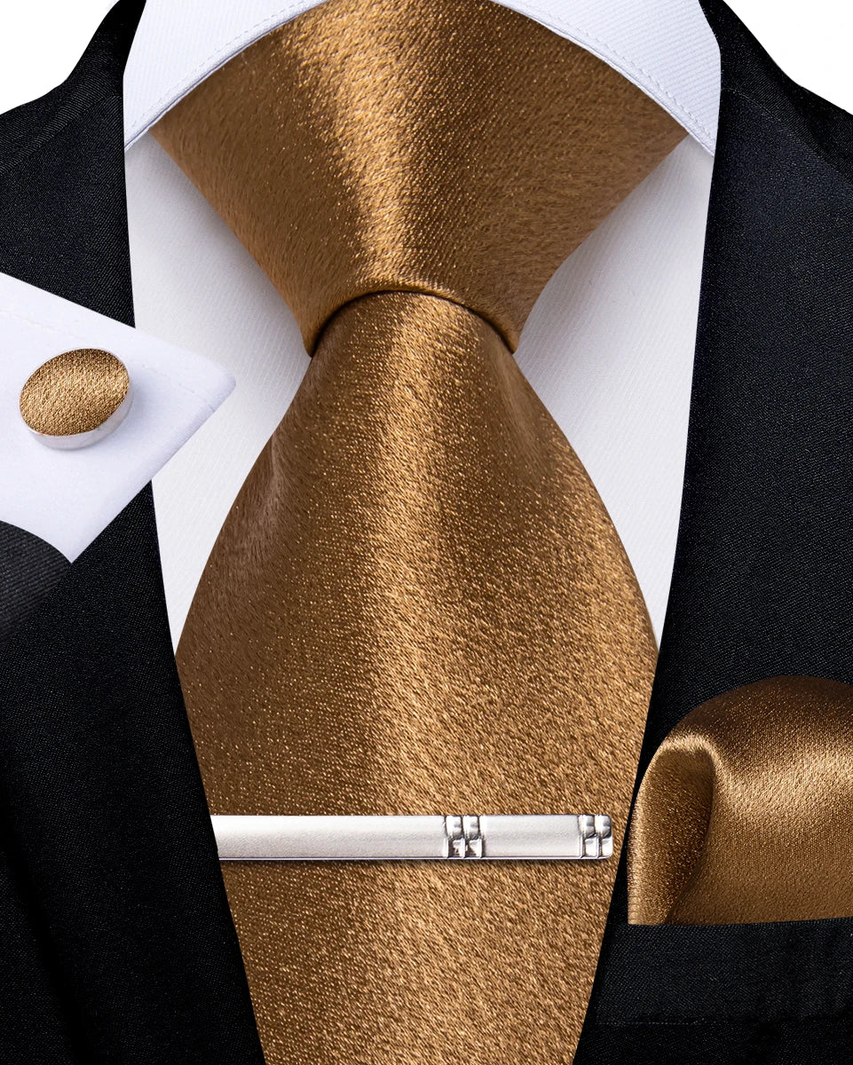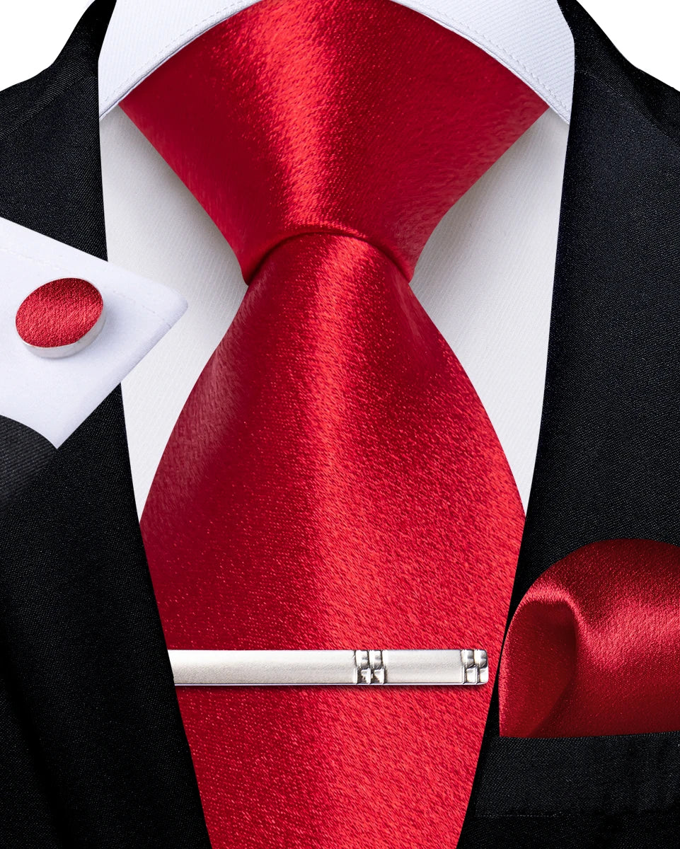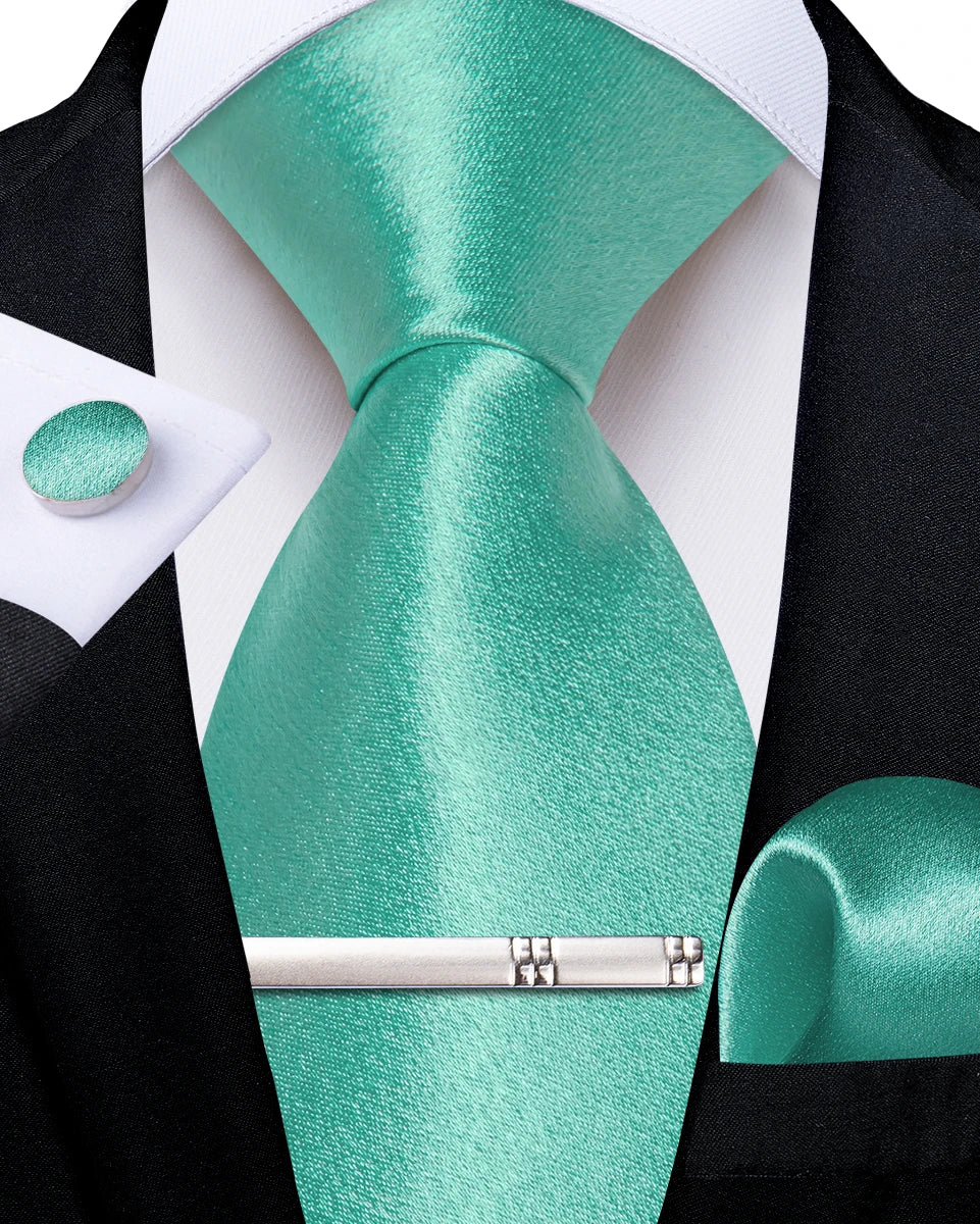 4Pcs Solid Green Brown Black Blue Red Satin 8cm Men Tie Set Handkerchief Cufflinks Wedding Party Accessories Gift for Husband