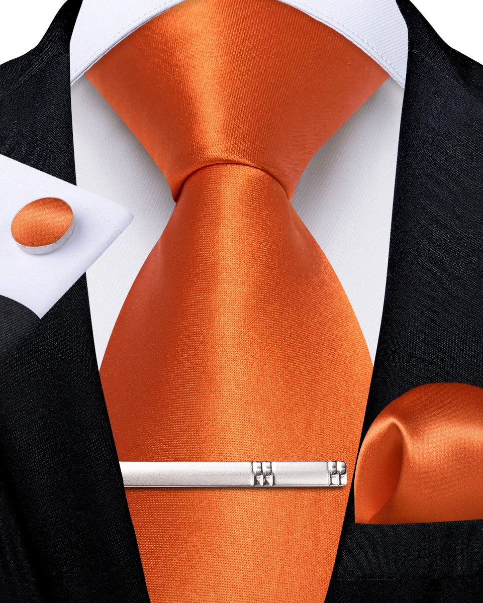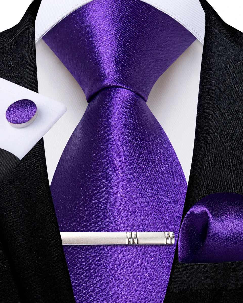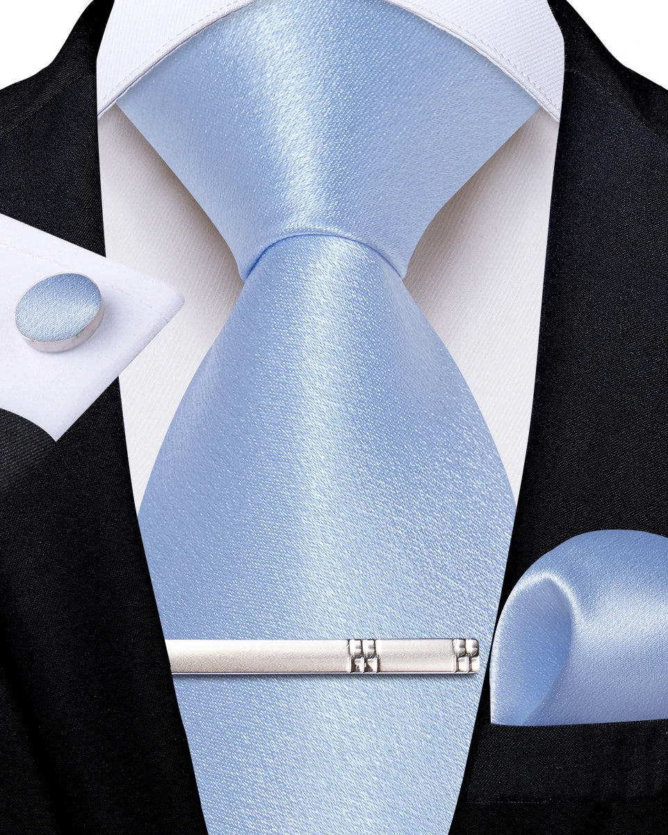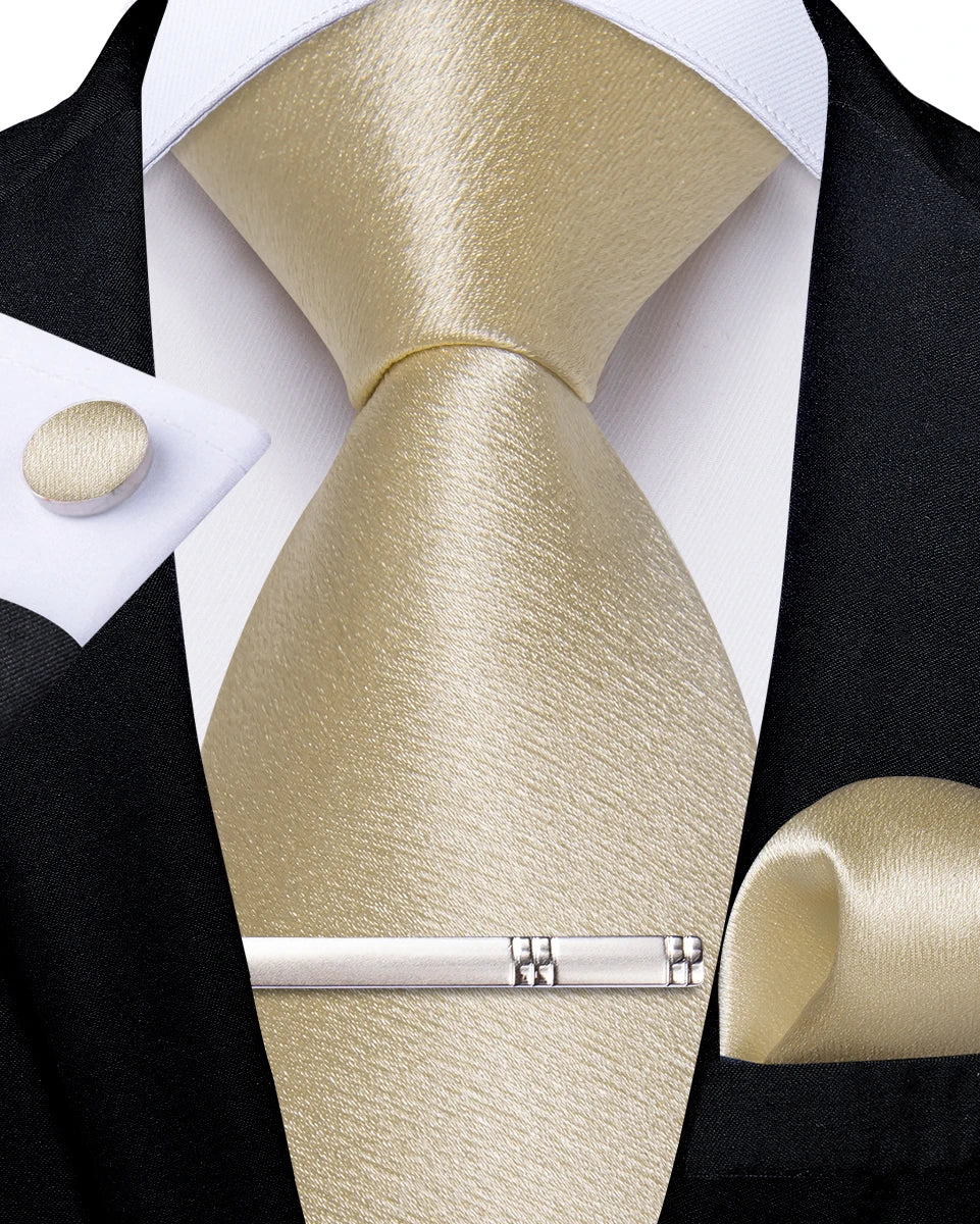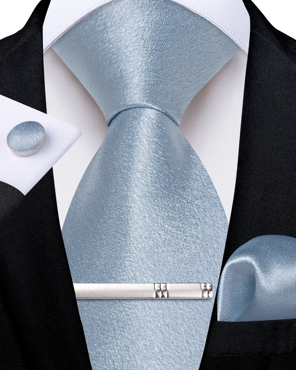 4Pcs Solid Green Brown Black Blue Red Satin 8cm Men Tie Set Handkerchief Cufflinks Wedding Party Accessories Gift for Husband