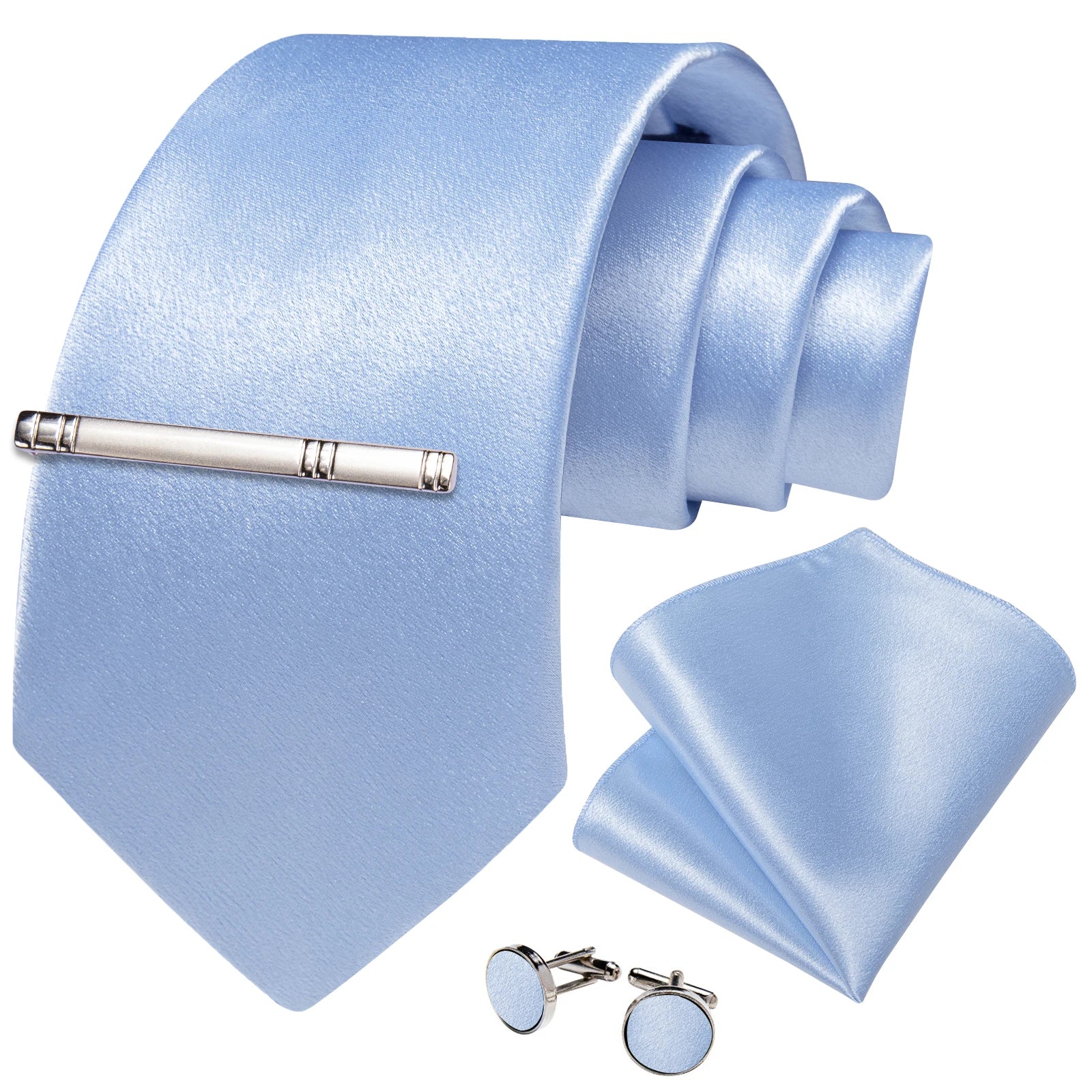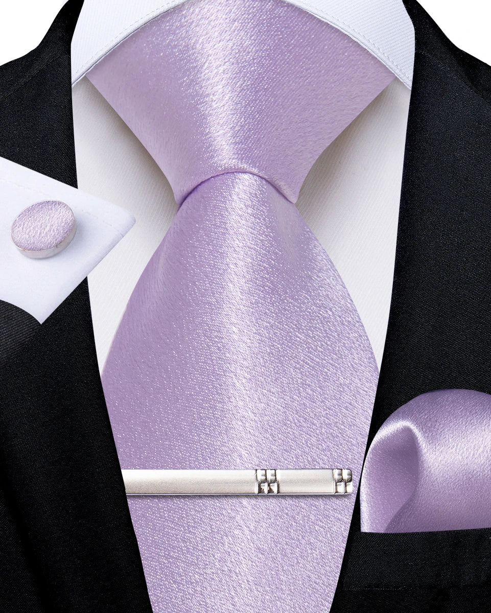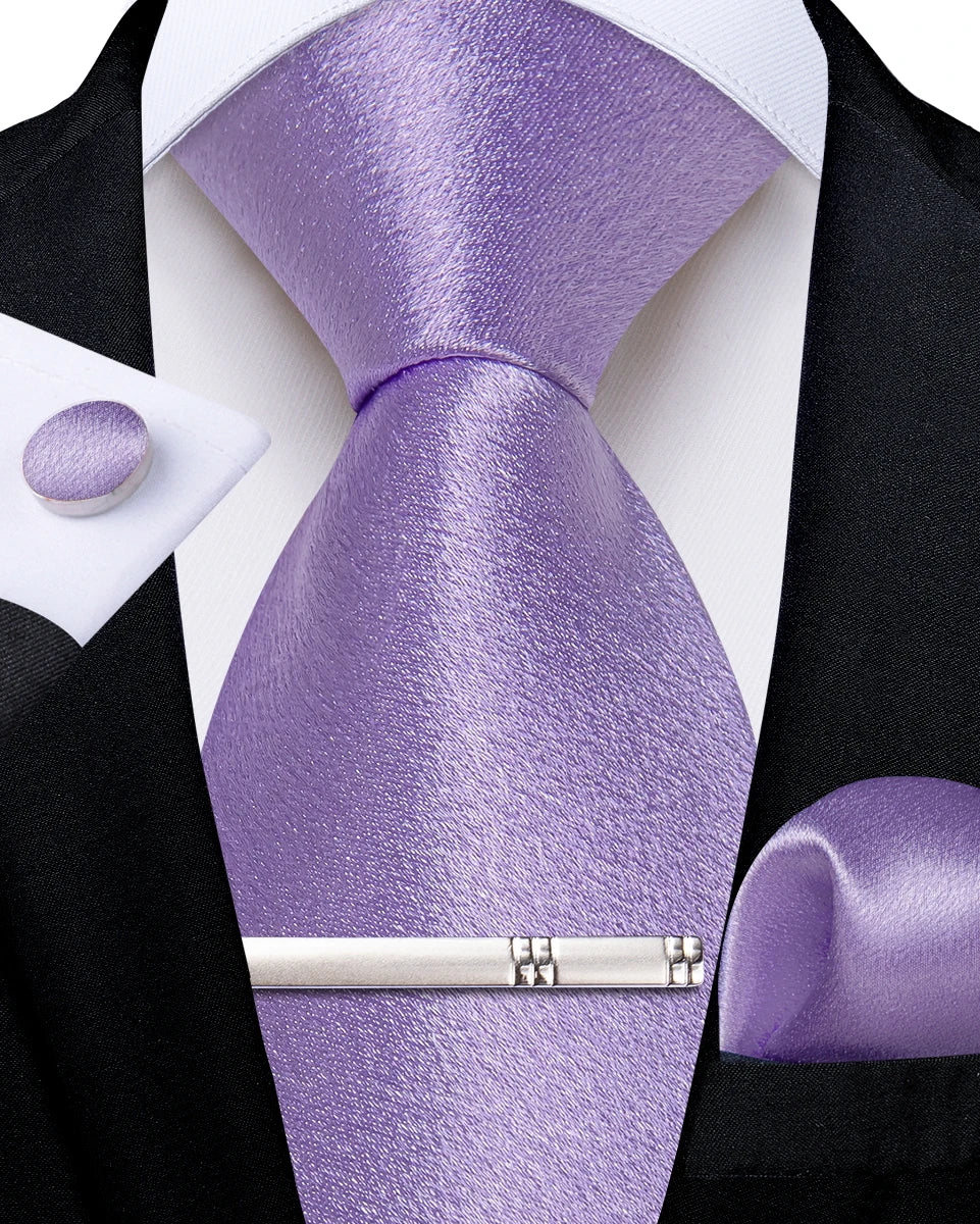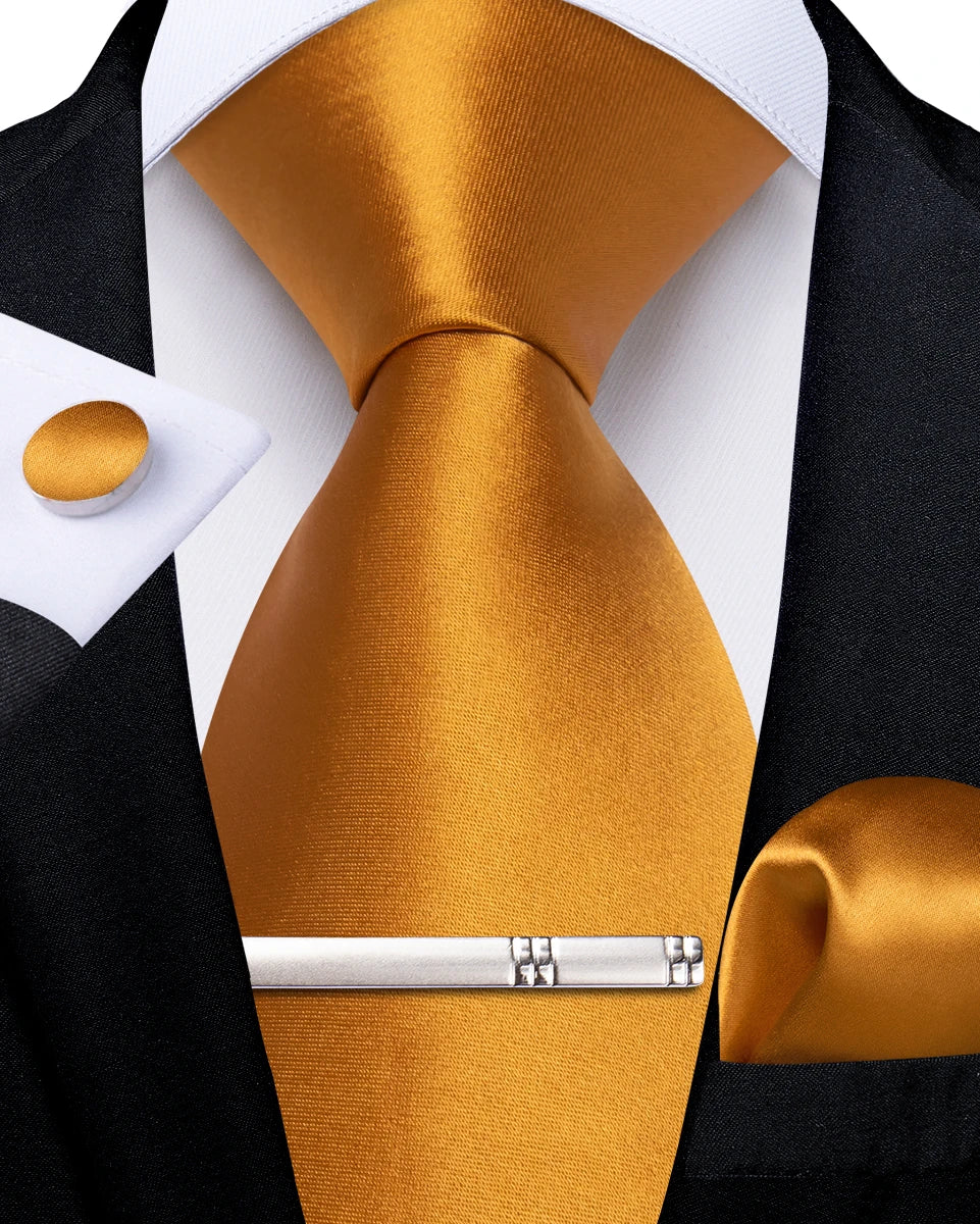 4Pcs Solid Green Brown Black Blue Red Satin 8cm Men Tie Set Handkerchief Cufflinks Wedding Party Accessories Gift for Husband
