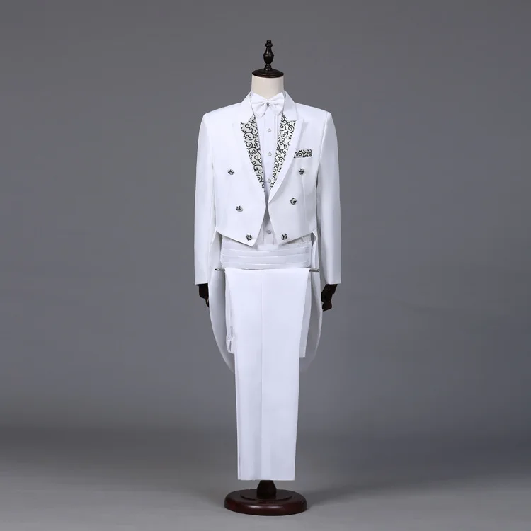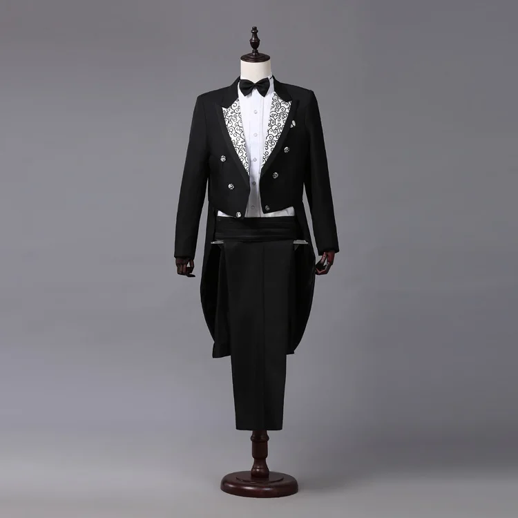 Custom Mens England Style Performance Wear Jacquard Lapel Tail Coat Stage Costumes For Singers Tuxedo Suits