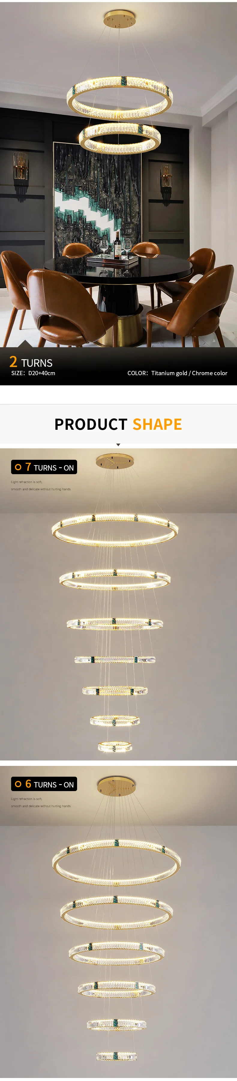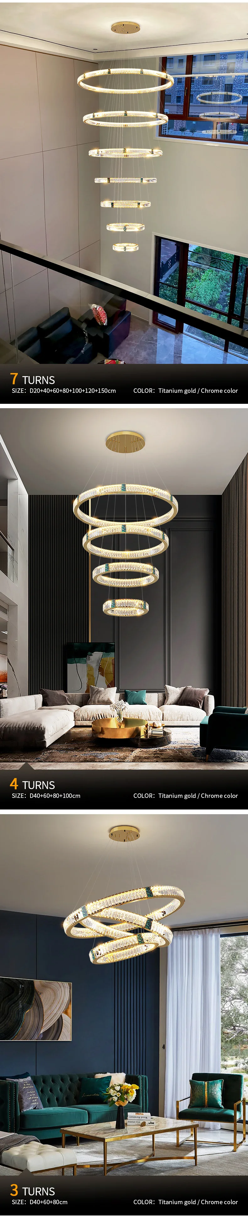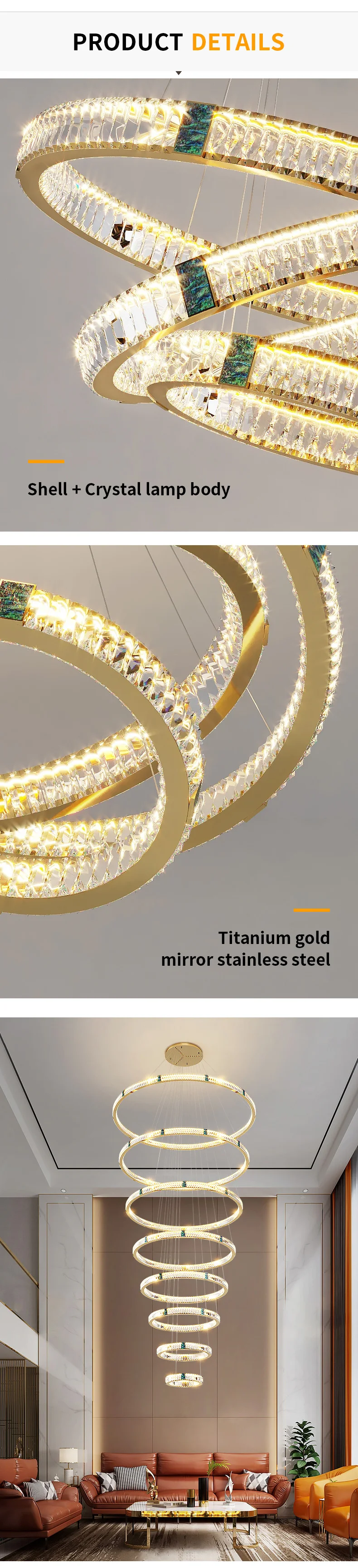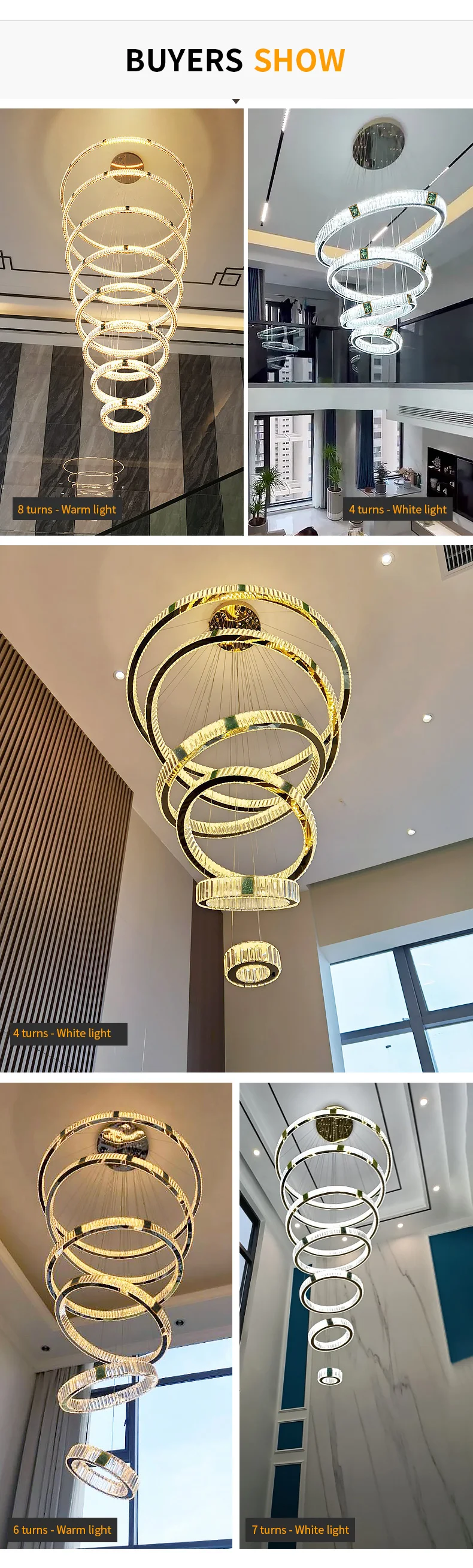 Lights For Home Hotel Villa Room Decoration Chandelier Lighting Crystal Hotels Remote Golden Ring Chandeliers & Pendant Lights