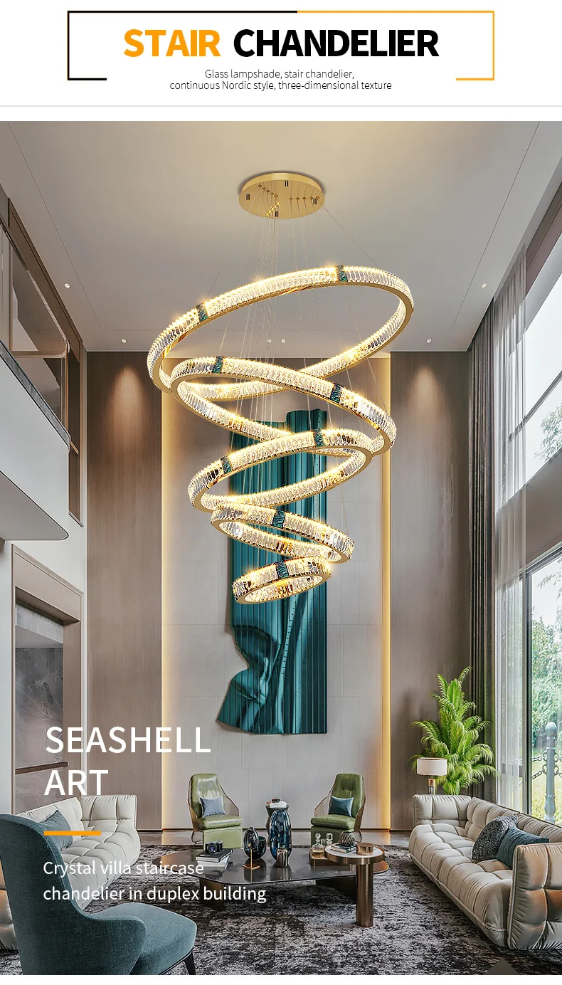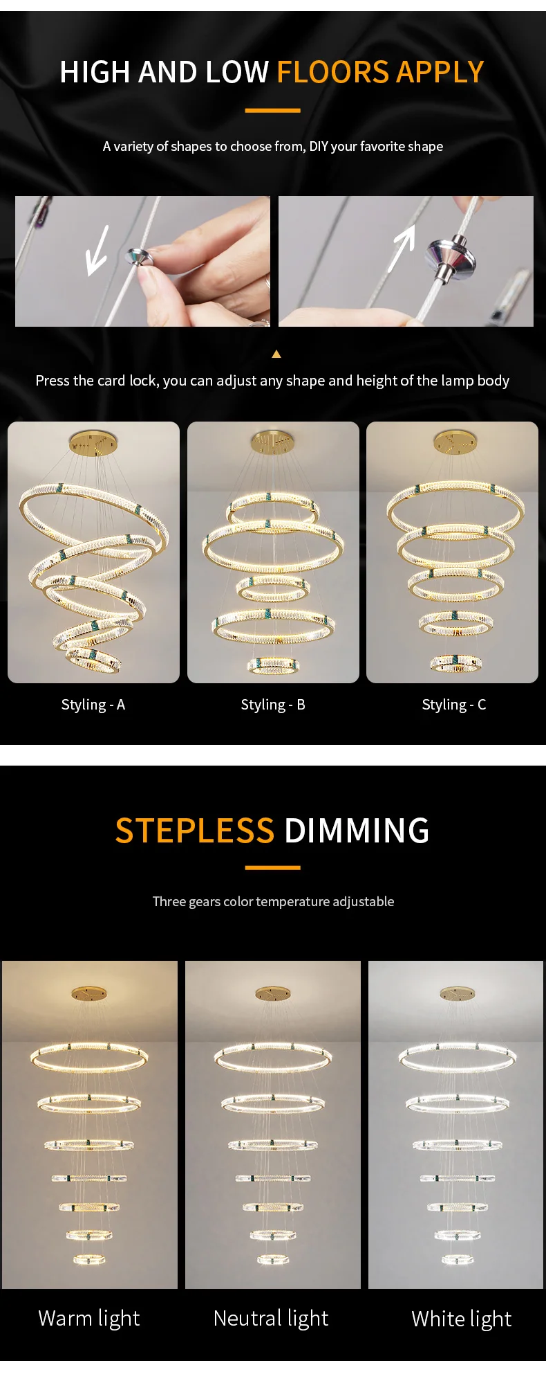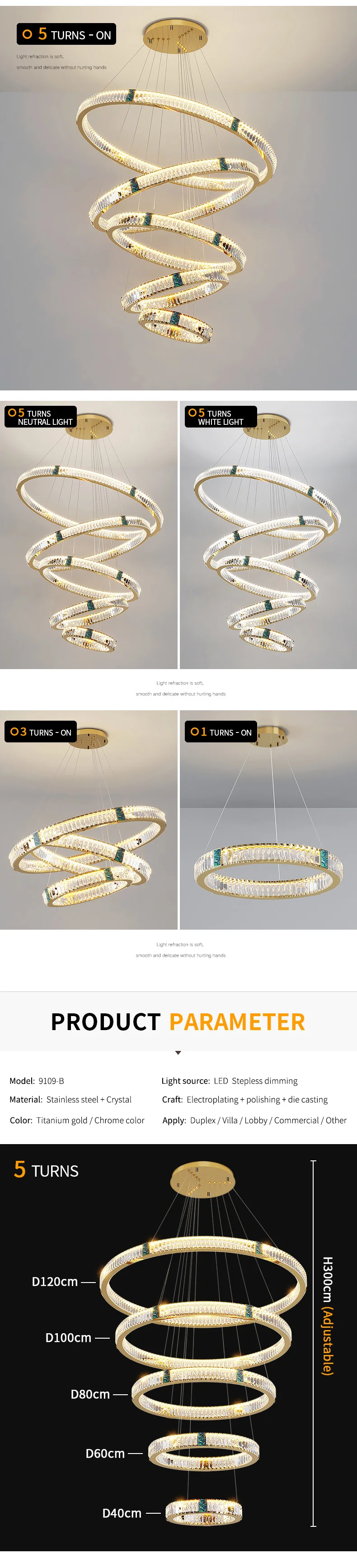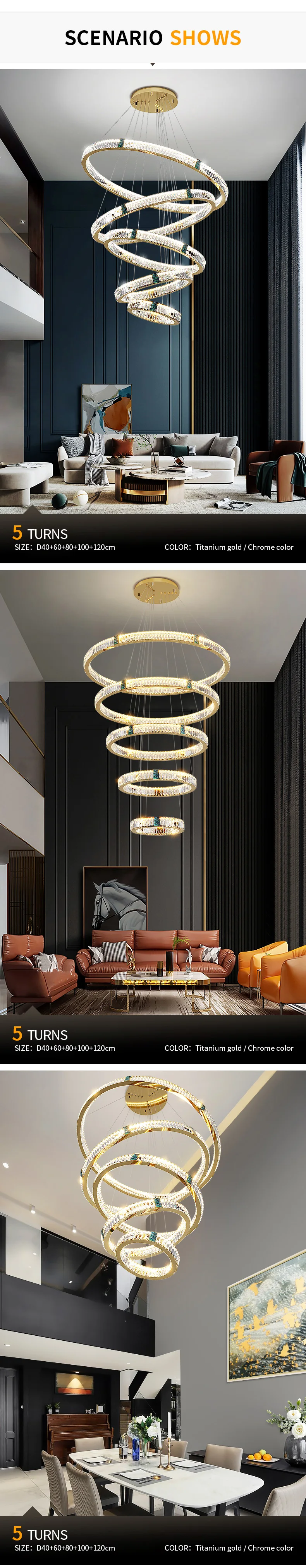 Lights For Home Hotel Villa Room Decoration Chandelier Lighting Crystal Hotels Remote Golden Ring Chandeliers & Pendant Lights