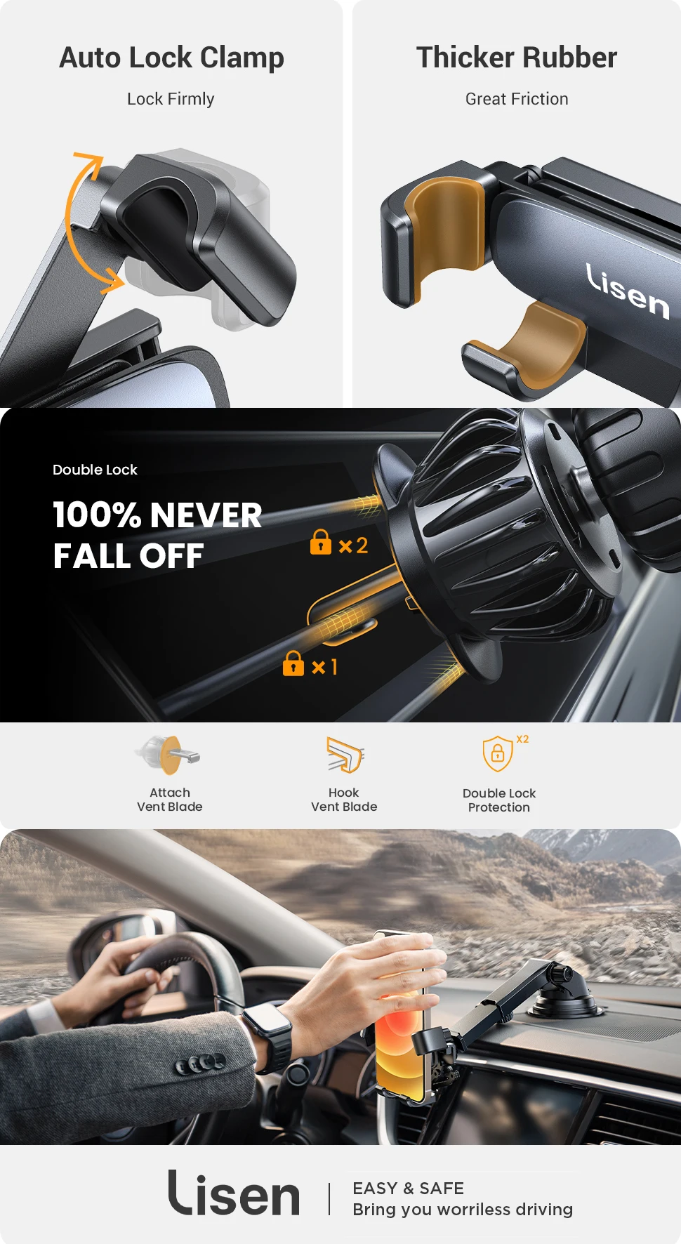 Lisen New Universal Auto-Grip Mobile Phone Accessories, Car Phone Holder Air Vent Mount Stand Cell Phone Holder