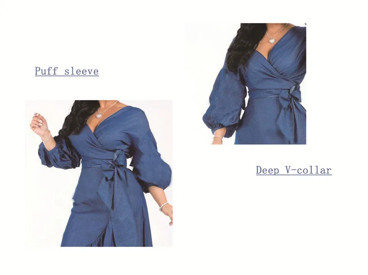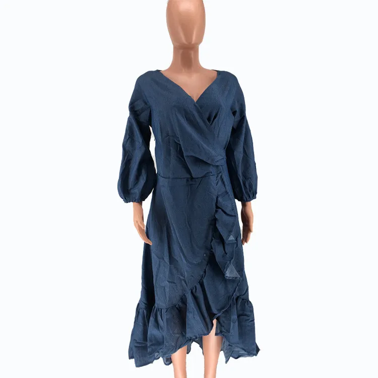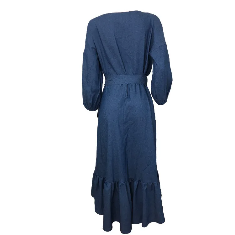 New Style Women Ruffles Design Ladies Dress Women Long Denim Dress Lady Jean Dresses