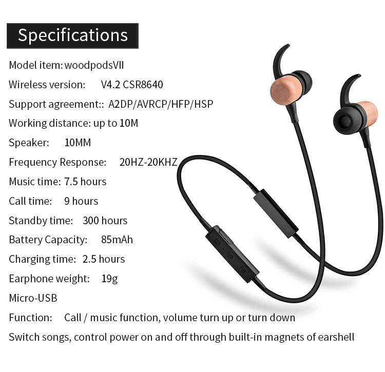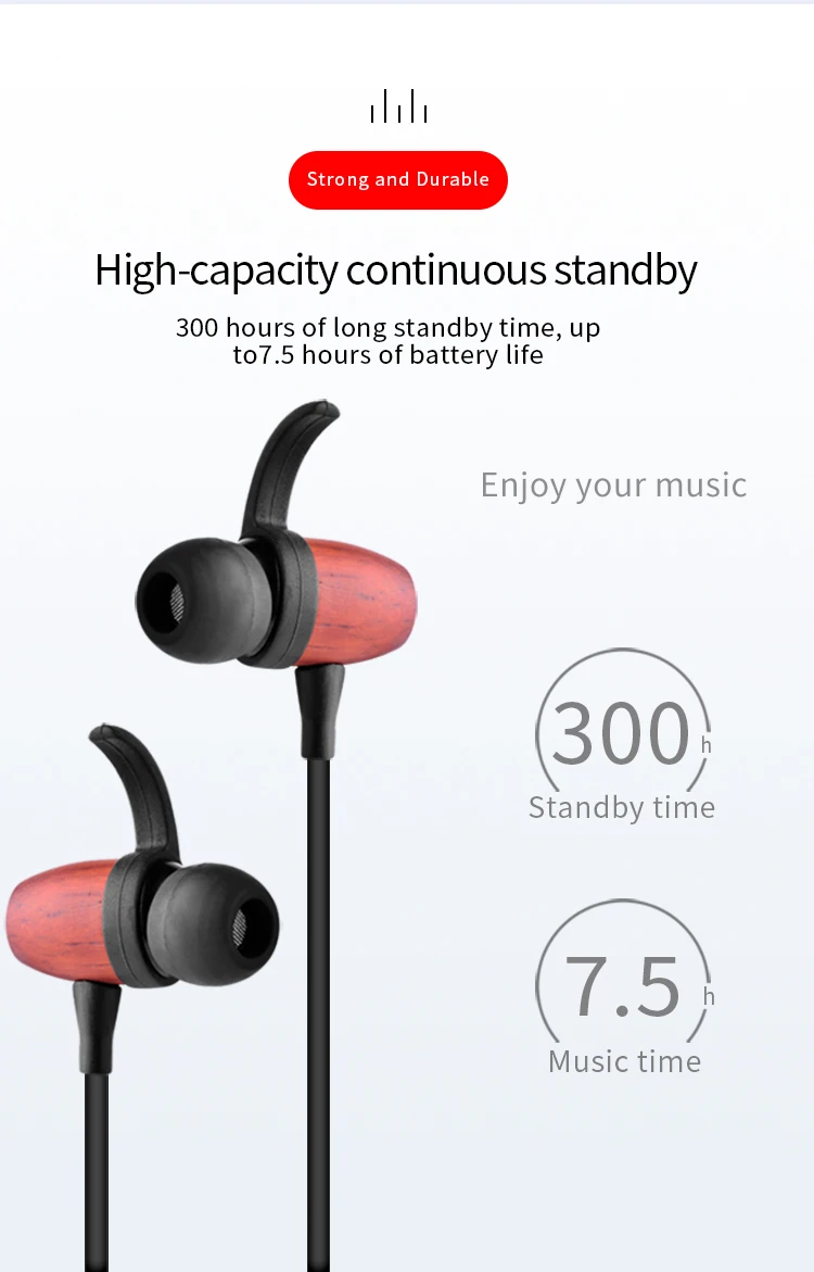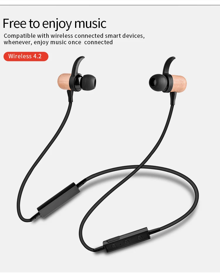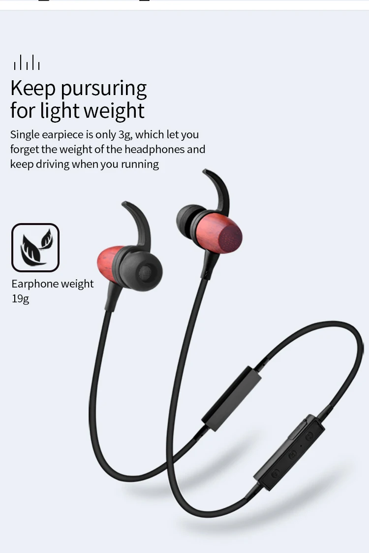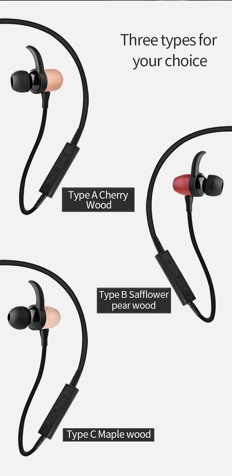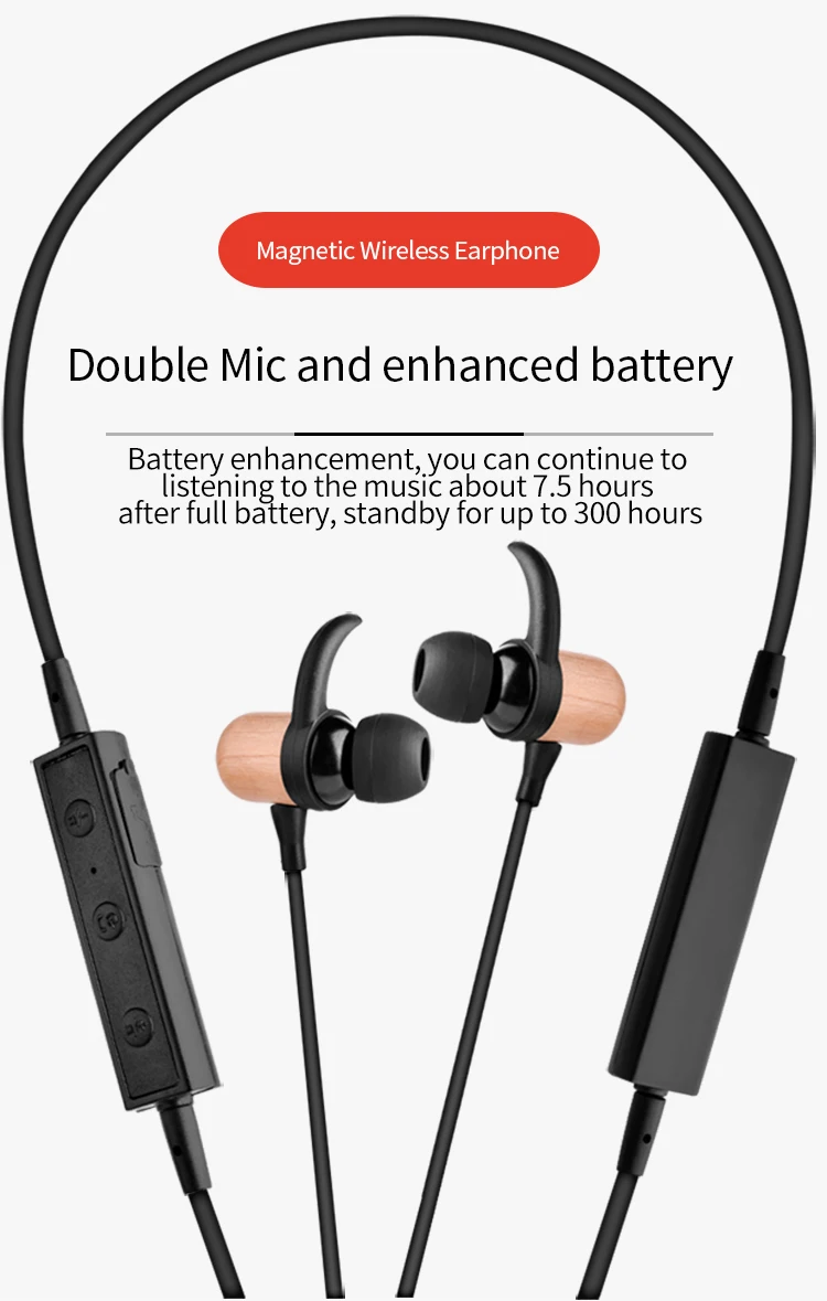 Magnetic Airpho Wireless Wooden Earbuds Custom Logo Bluetooth Earphon Paypal Neck Band Bluetooth Earphone 5.1 Headphone