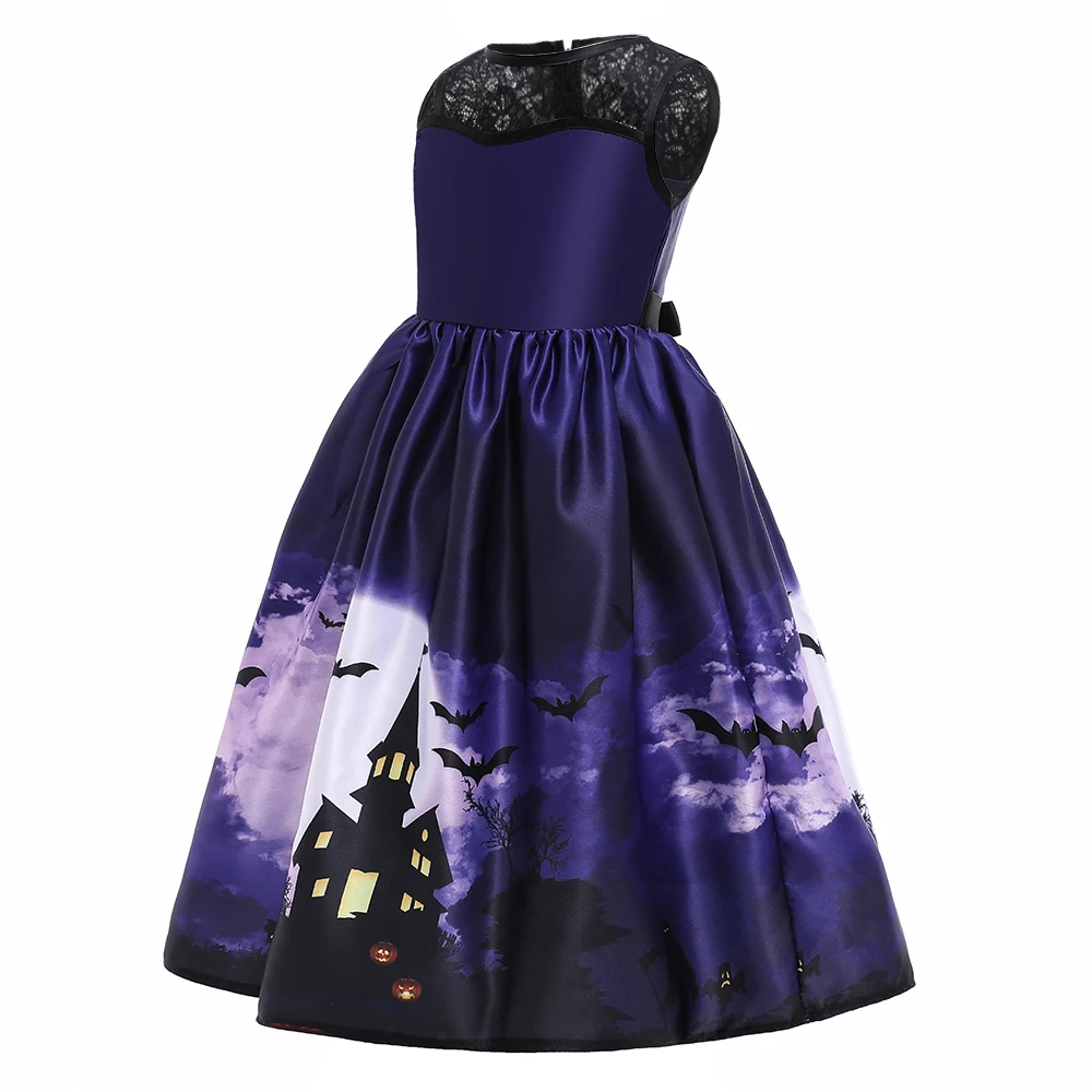 Meiqiai Latest Halloween Cosplay Costume V-neck Kids Party Dress Printed Cute Girl Frock WS011