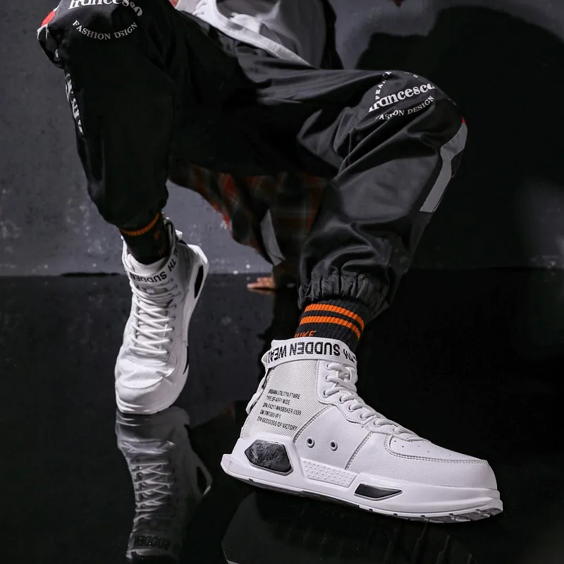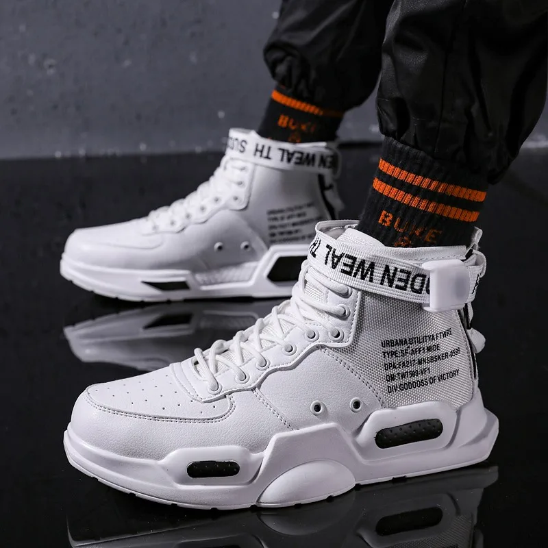 Men's High Top Fashion Leather Sneakers Trend Comfortable Men Casual Shoes Outdoor Non-slip Breathable Sneakers
